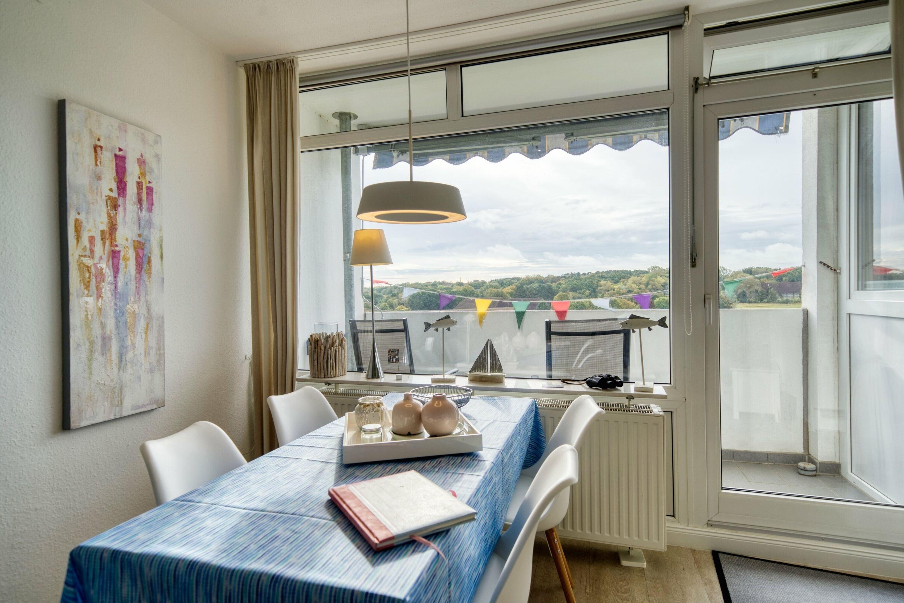 In der 7. Etage des Hauses N im beliebten Ferienpark Heiligenhafen erwartet Sie diese gemütliche 45?m² große Ferienwohnung mit einem Balkon zur Ostseite. Von hier aus genießen Sie einen herrlichen Blick auf den Binnensee in Richtung Yachthafen – ideal für entspannte Morgenstunden oder laue Sommerabende.