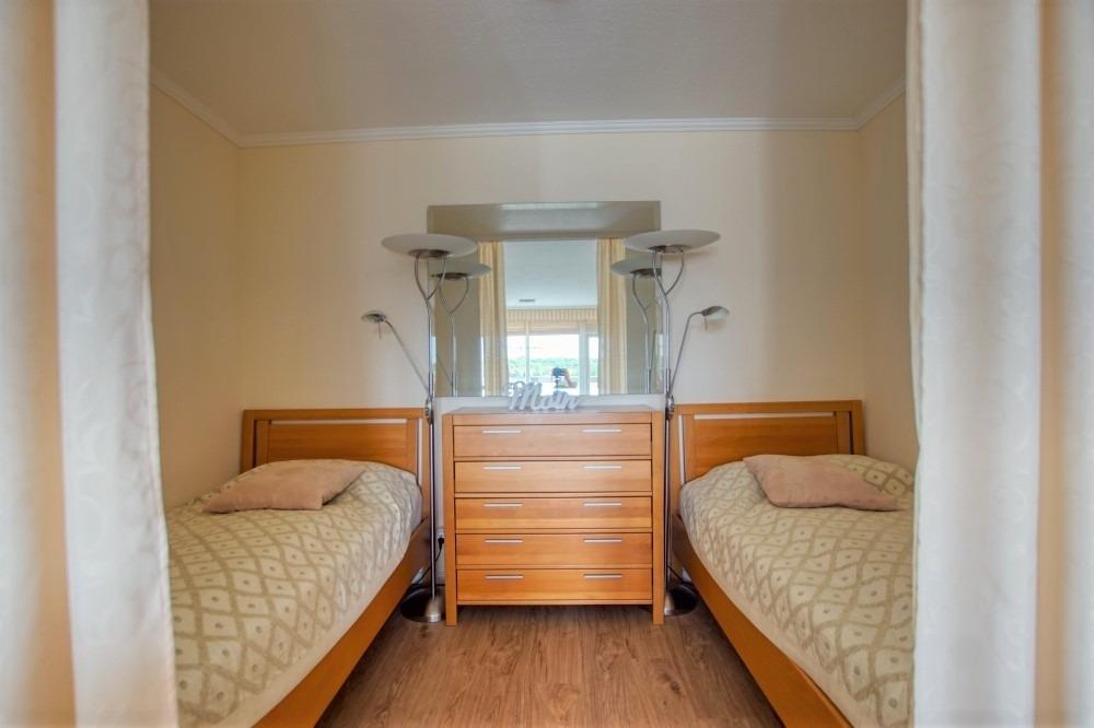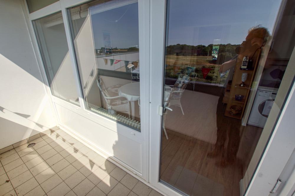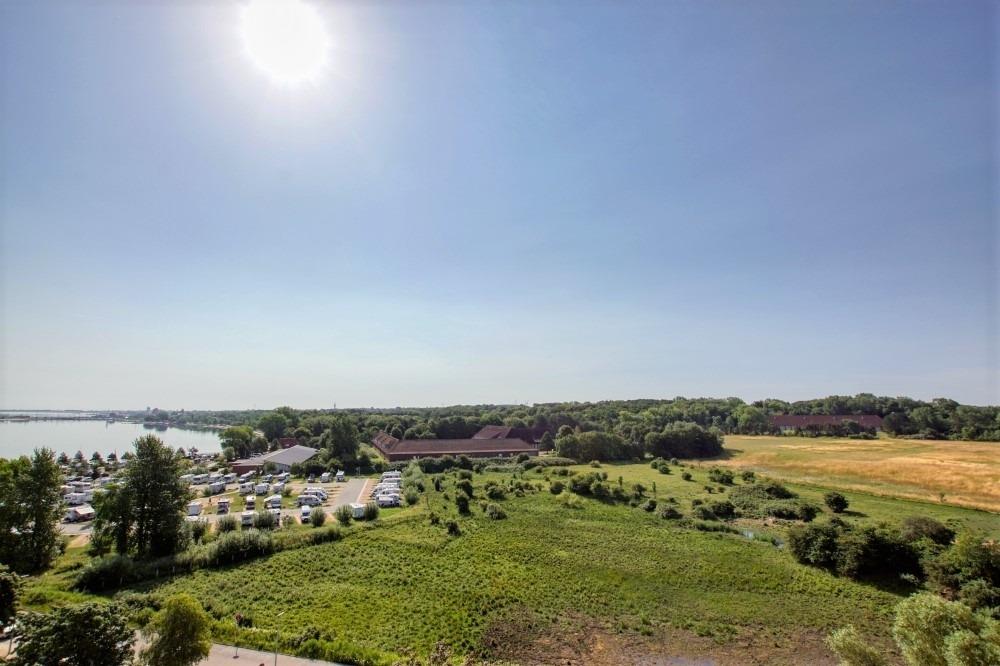 Die Wohnung liegt im Haus N Ferienpark, in der 9. Etage, mit Balkon in Richtung Yachthafen und Wiesen, der einen schönen Blick auf den Binnensee bietet.