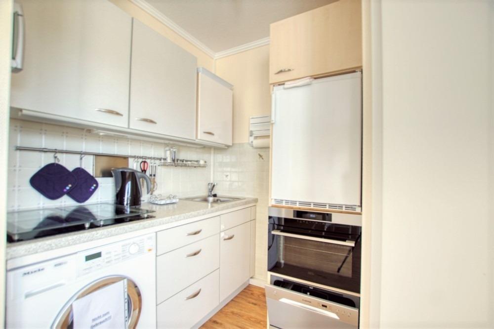 Küche: Komplett ausgestattet mit Induktionskochfeld, Kühlschrank, Geschirrspüler und Backofen