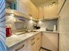Küche mit Ceranherd, Kühlschrank mit Gefrierfach, Toaster, Wasserkocher, Filterkaffeemaschine und Mikrowelle