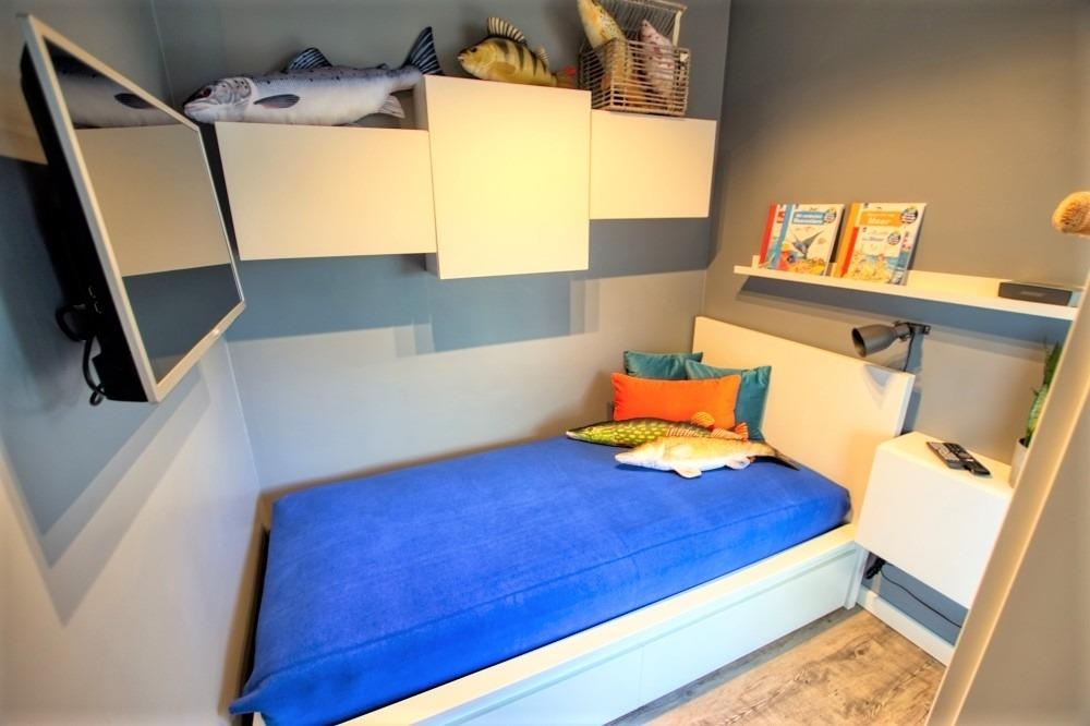 Zweites Schlafzimmer mit Einzelbett und ebenfalls TV
