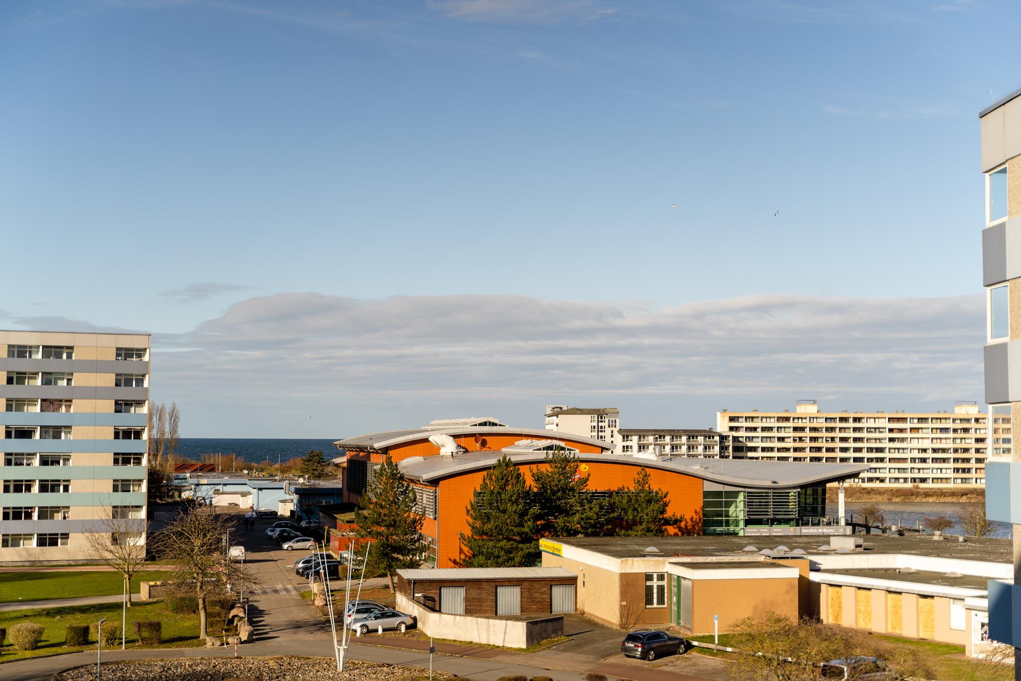 Die Wohnung liegt im Haus O in der 4. Etage, mit Balkon zum Innenhof, der einen schönen Blick auf die Grünanlagen bietet sowie einen Teil-Ostseeblick in der Ferne.