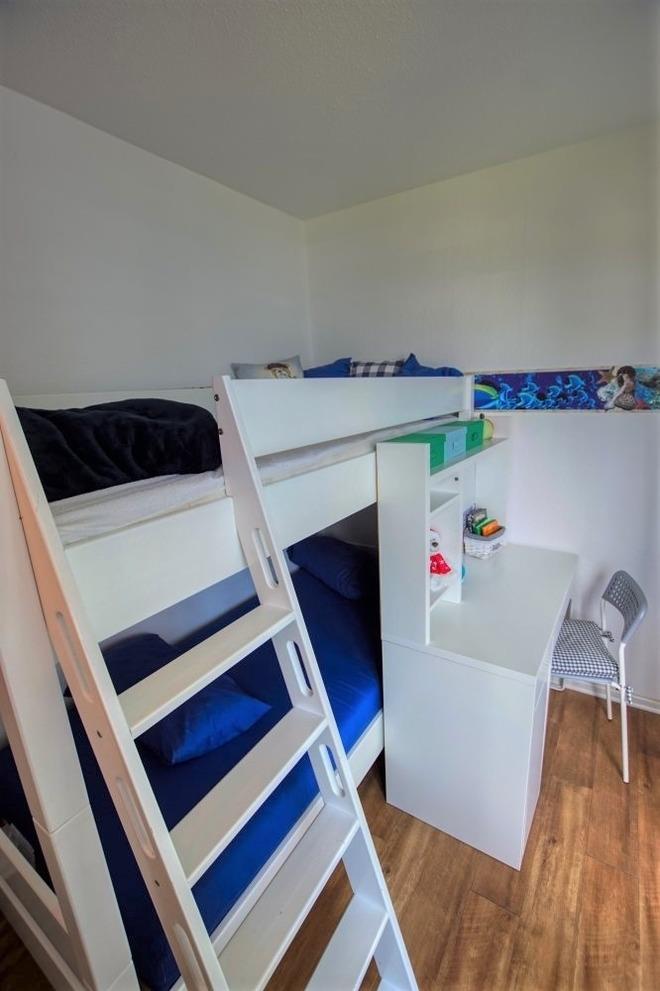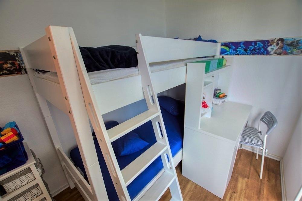 Separates Schlafzimmer mit Etagenbett und Schreibtisch