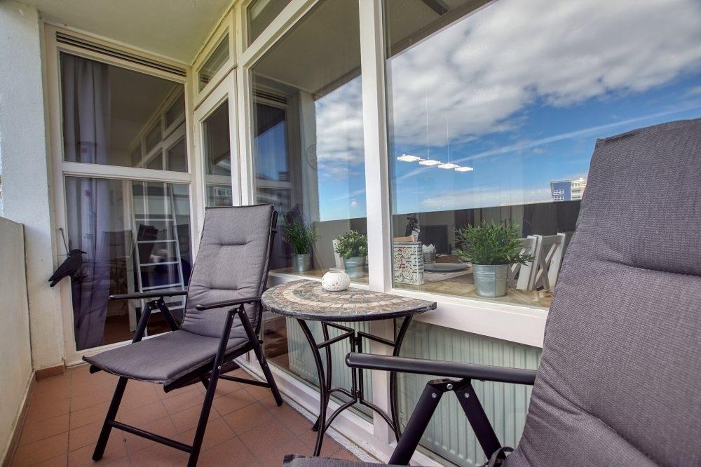 Balkon mit weitem Blick in Richtung Ostsee und Binnensee