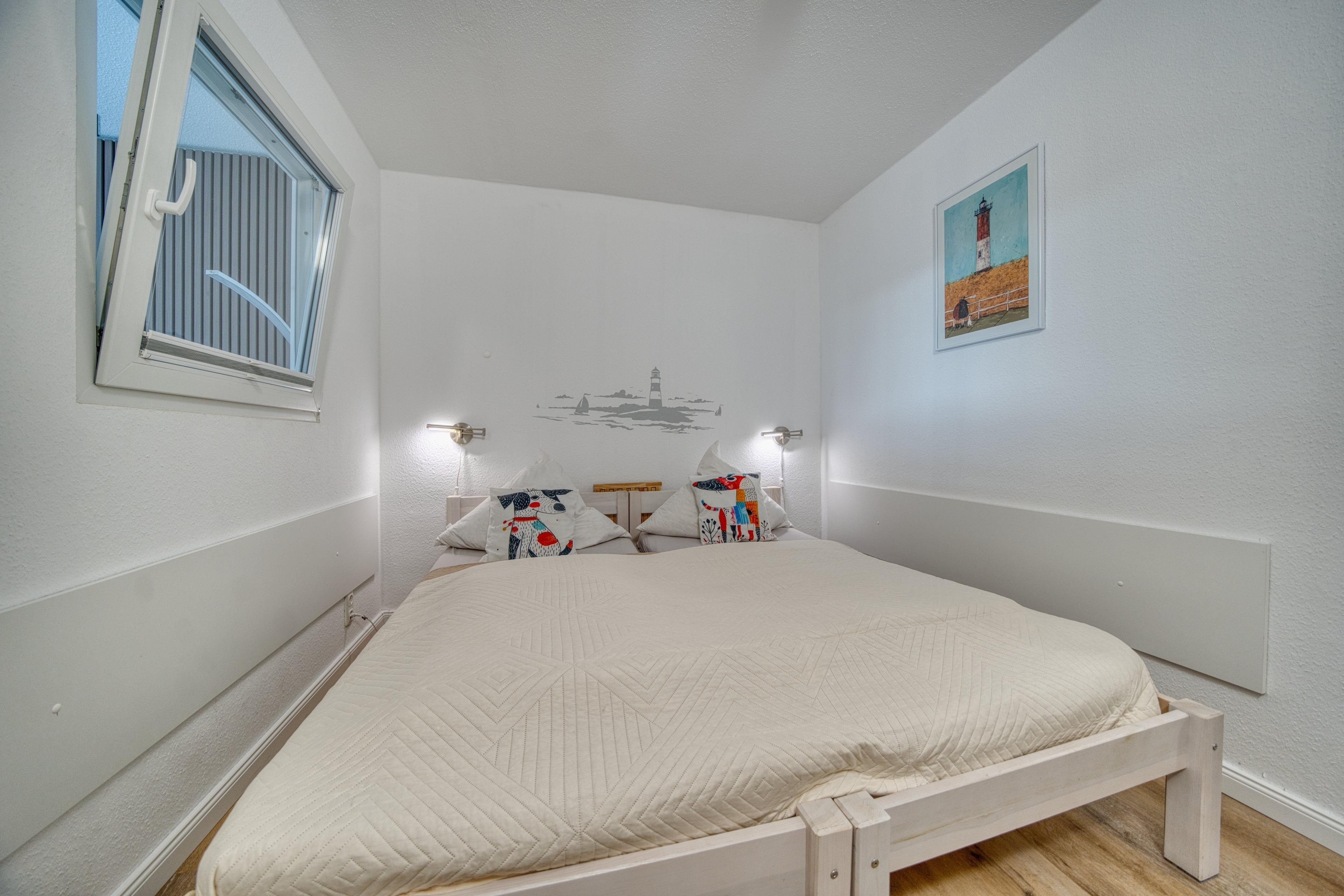 Separates Elternschlafzimmer mit Doppelbett (zwei Einzelbetten auseinander- und zusammenschiebbar) und zusätzlichem Fernseher