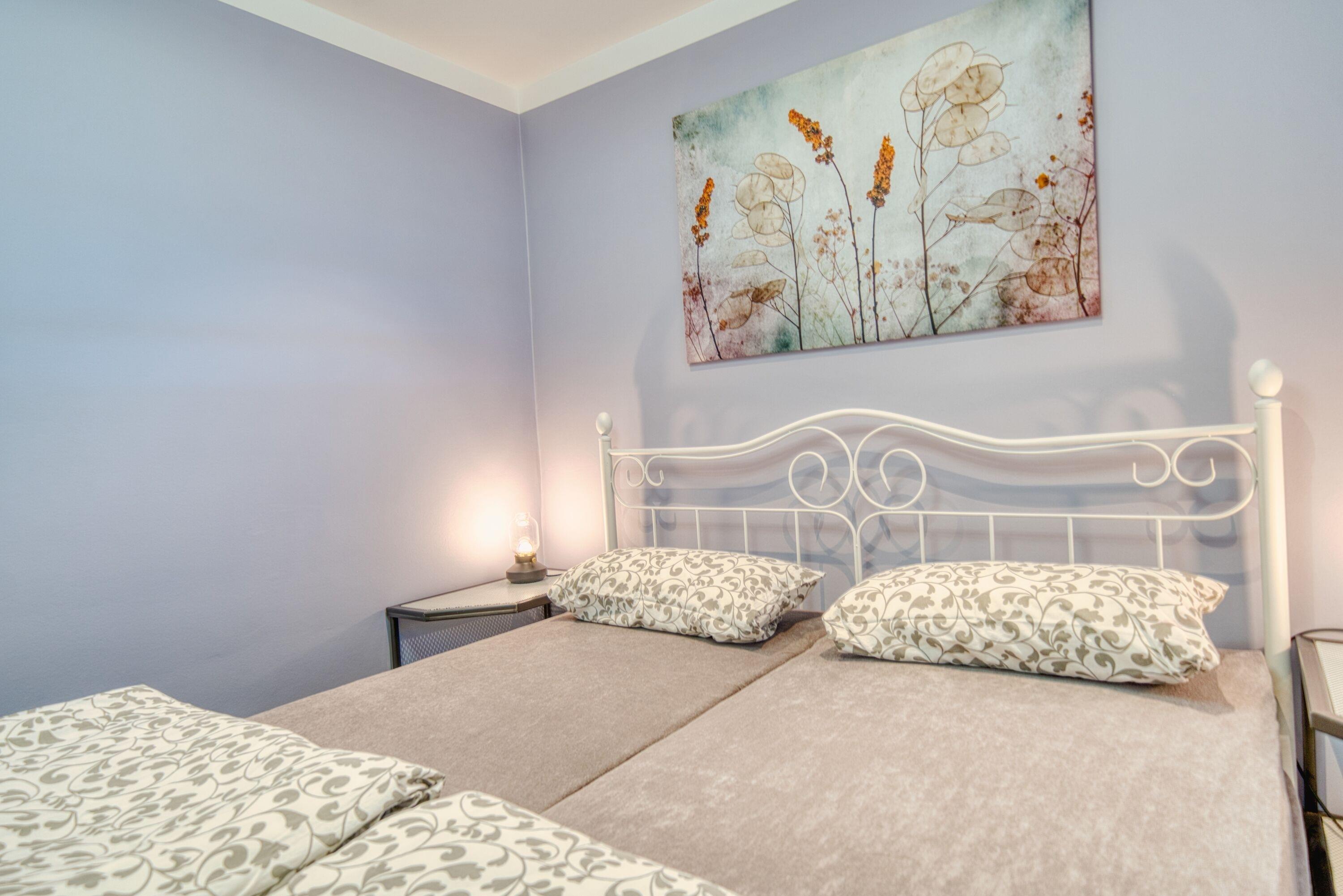 Separates Schlafzimmer mit komfortablem Doppelbett und zweitem Flachbild-TV
