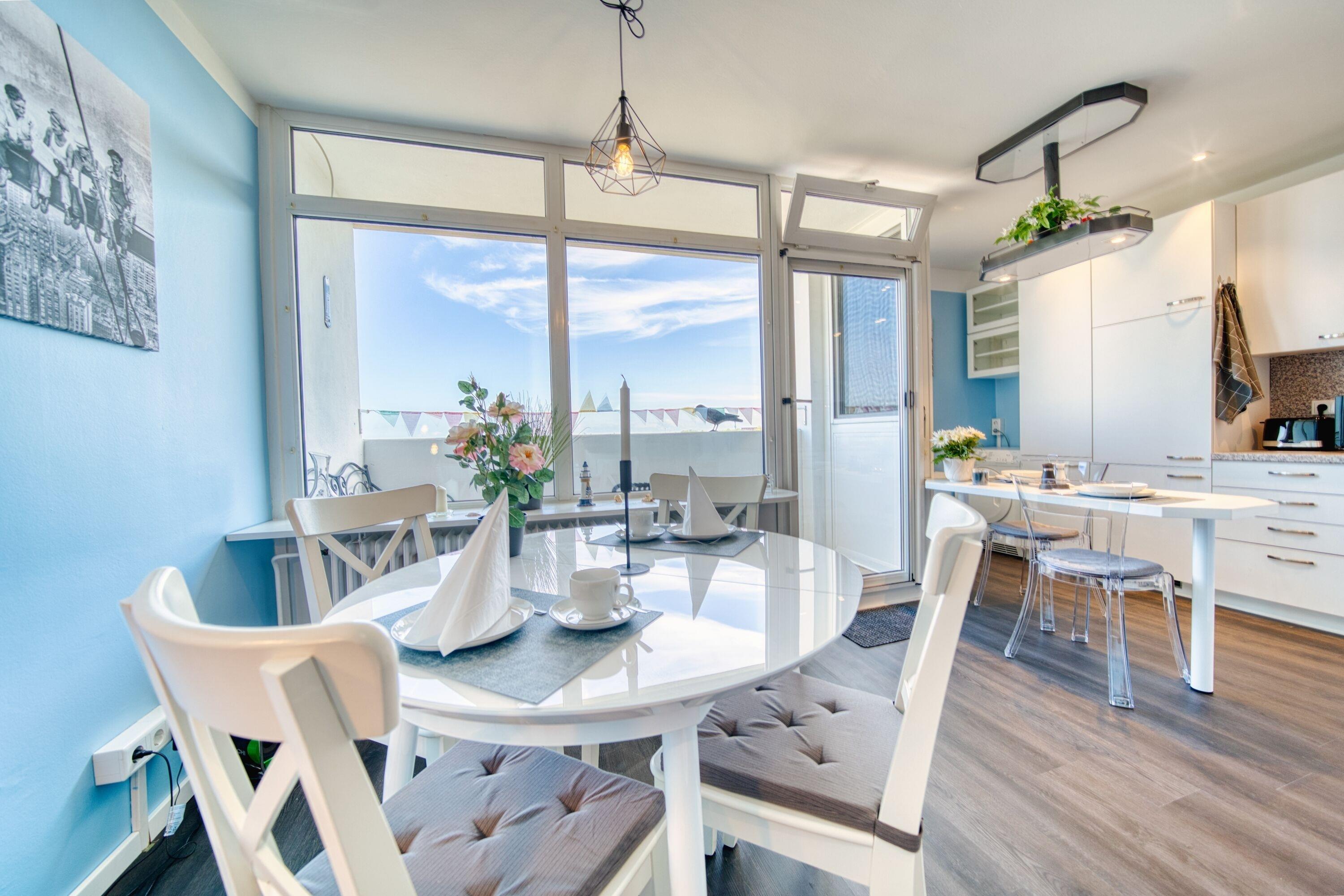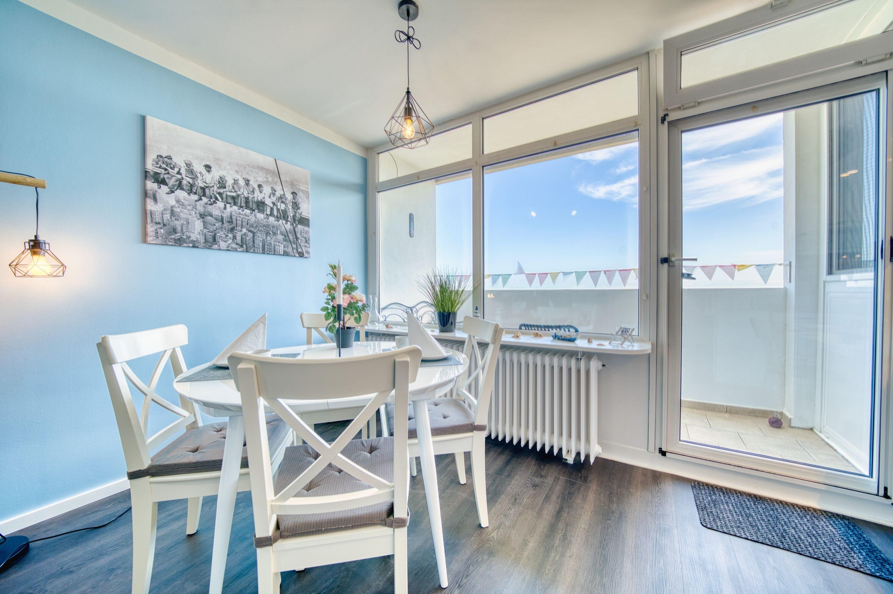 Esstisch mit Ausblick direkt vor dem Balkon