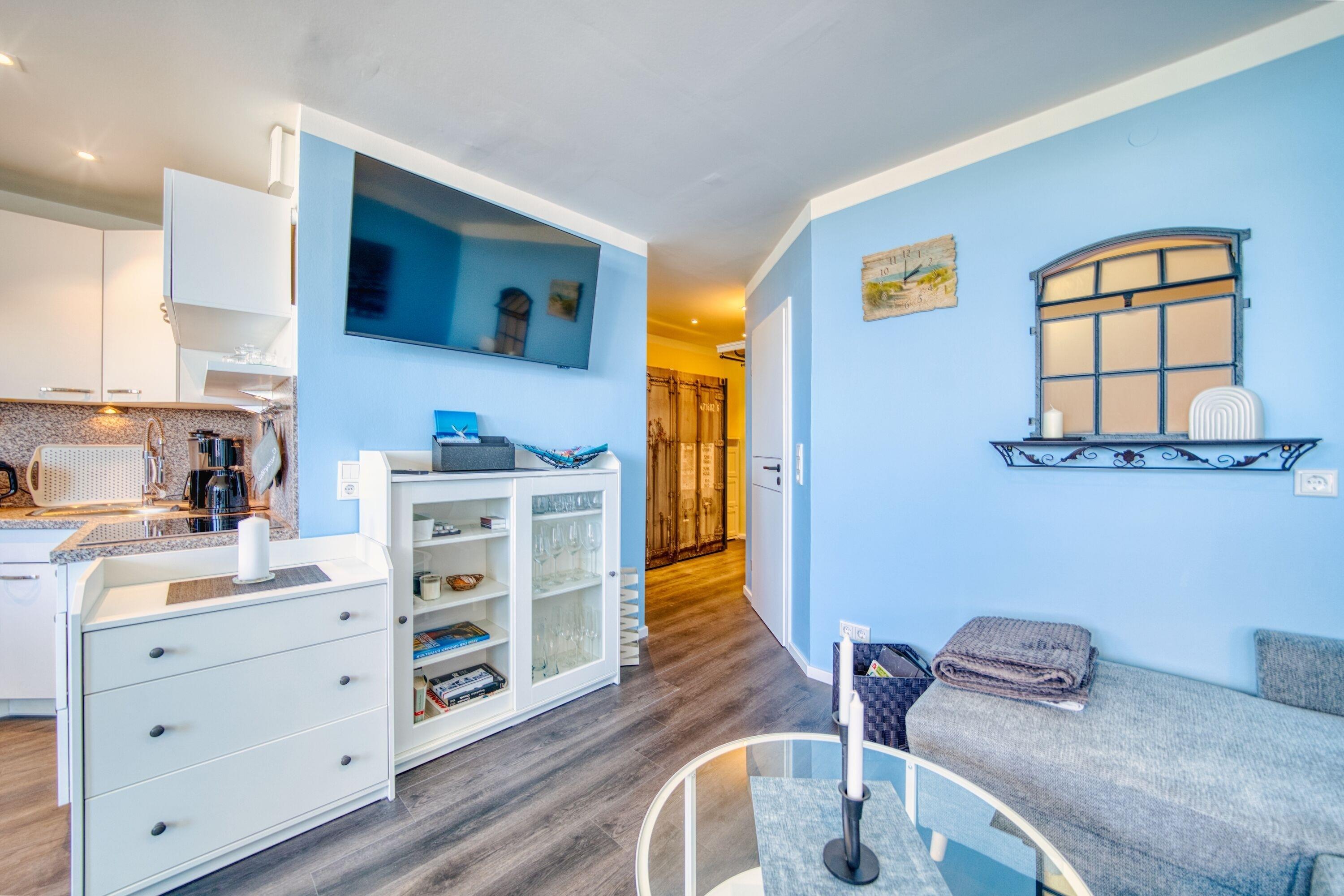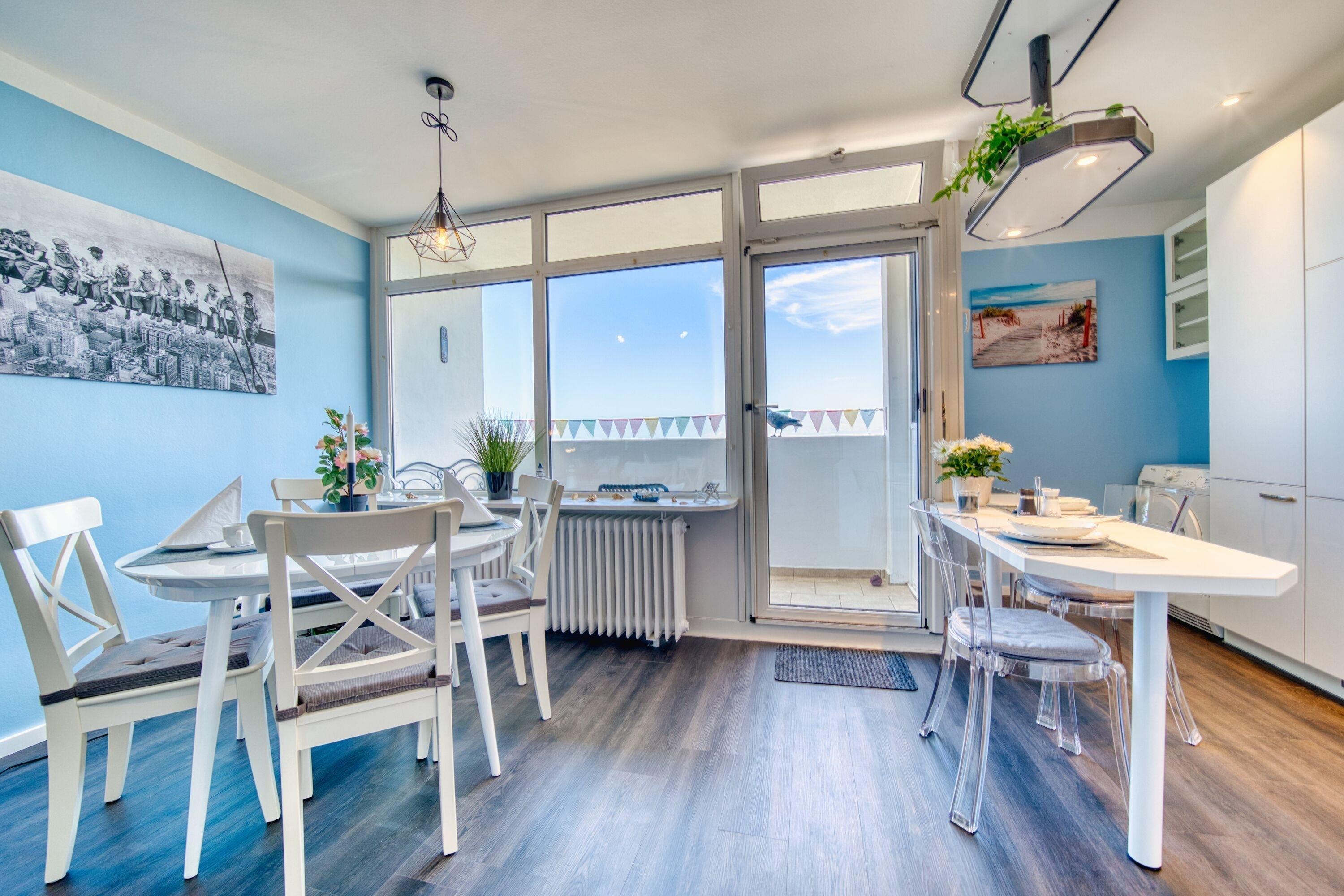 Genießen Sie Ihren erholsamen Ostseeurlaub in dieser kernsanierten 2-Zimmer-Ferienwohnung im Haus Q, 6. Etage, ideal für 2 Personen auf 45 m² Wohnfläche. Vom sonnigen Balkon aus genießen Sie einen herrlichen Ausblick über den Binnensee bis hin zum Yachthafen und zur Stadt – ein echtes Highlight zu jeder Tageszeit.