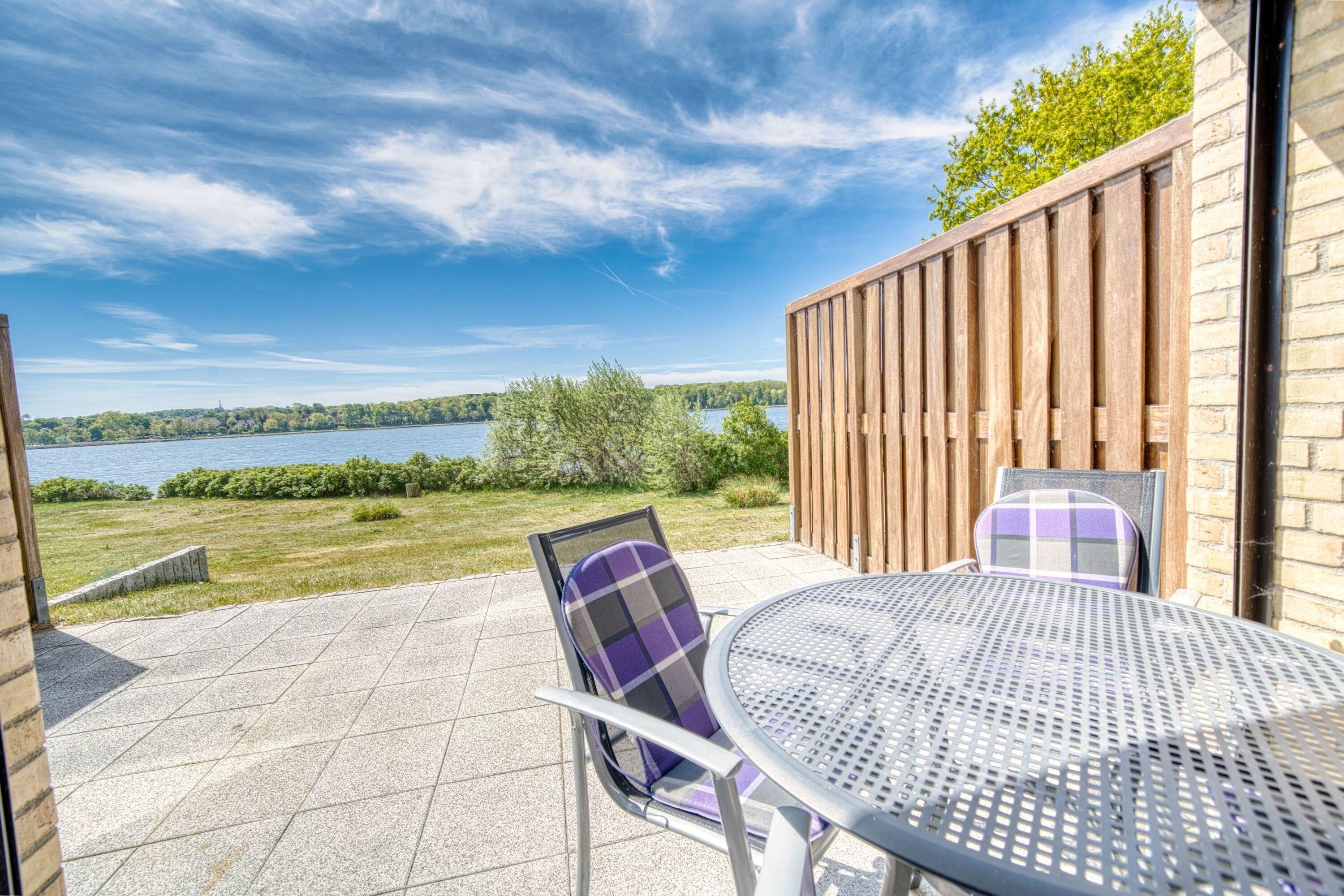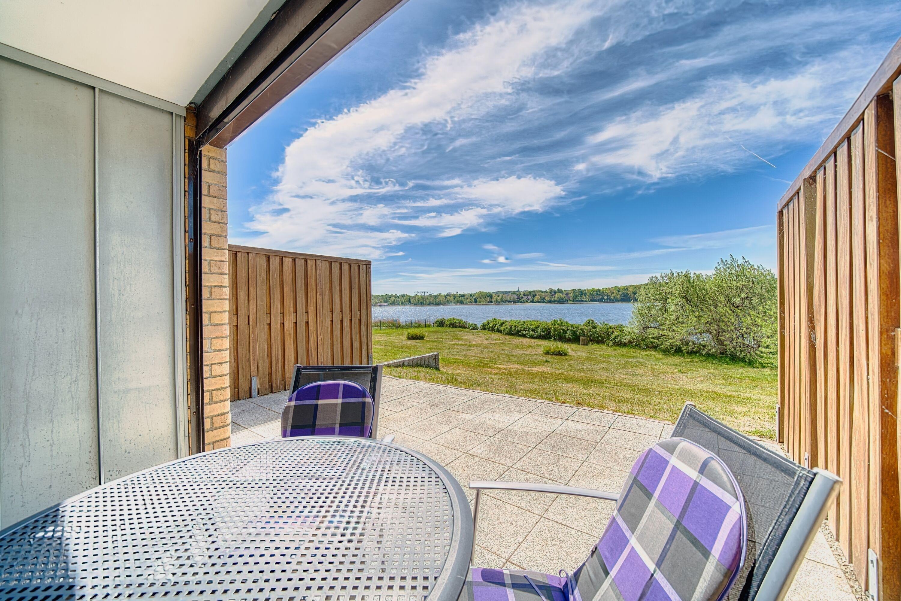 Eine großzügige Terrasse mit traumhaftem Seeblick und direktem Zugang zum Binnensee
