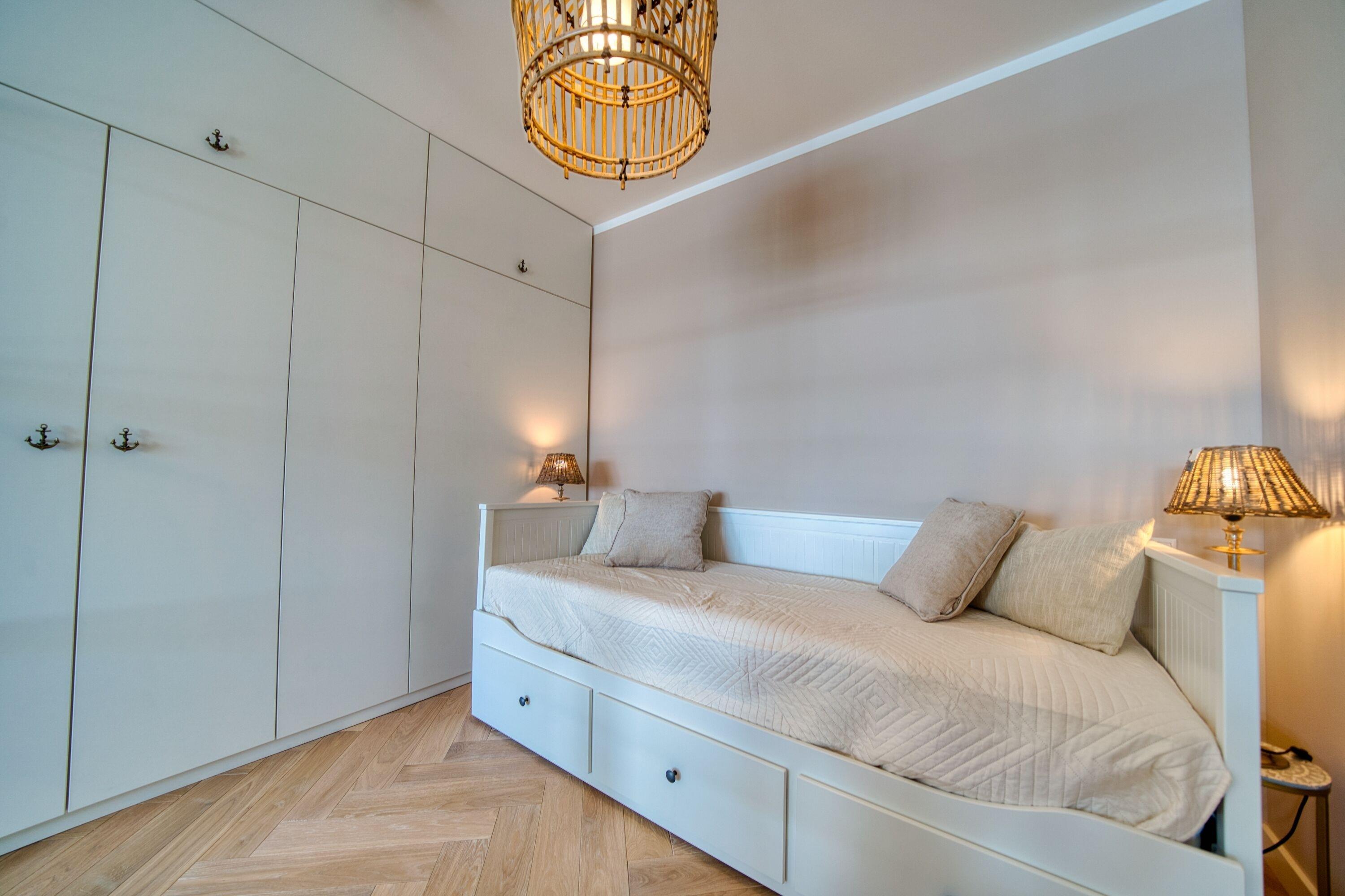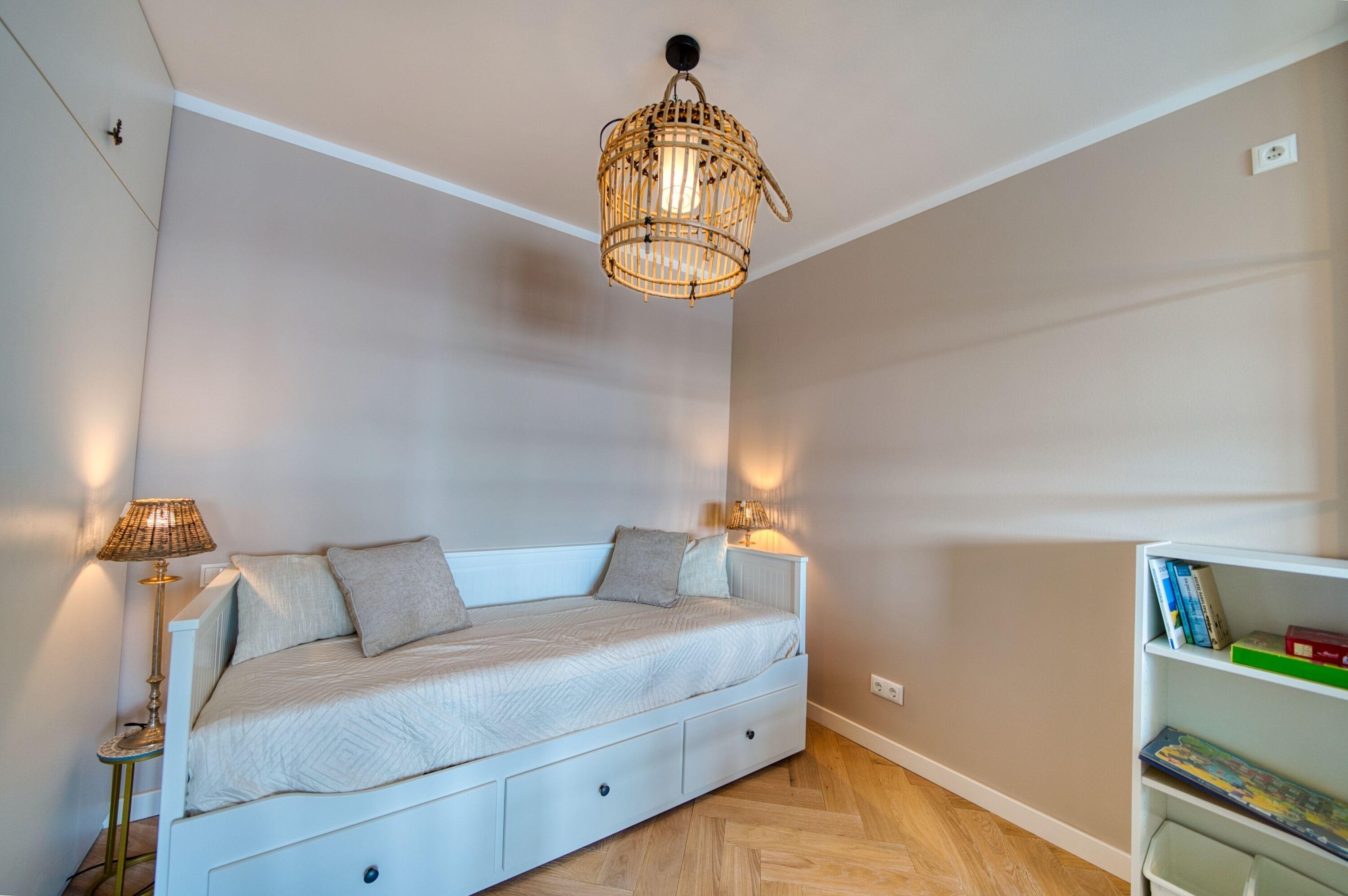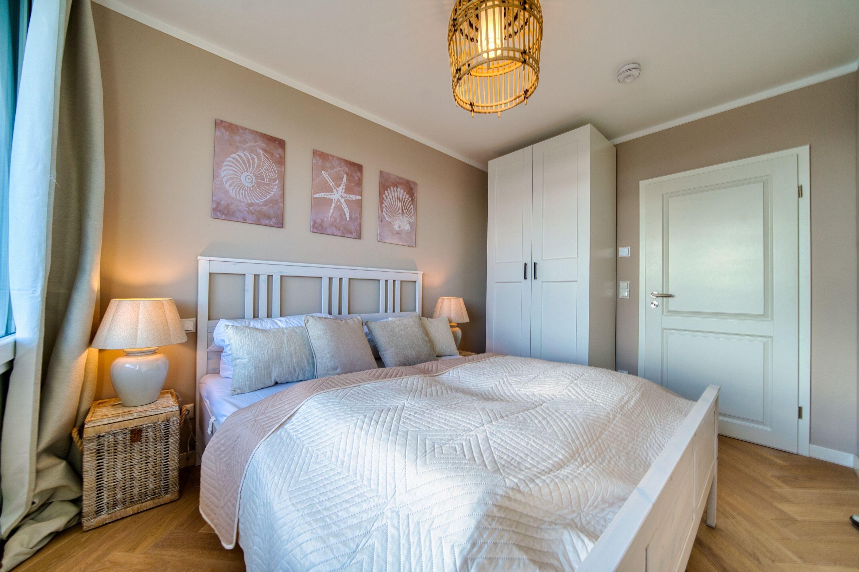 Separates Schlafzimmer mit gemütlichem Doppelbett