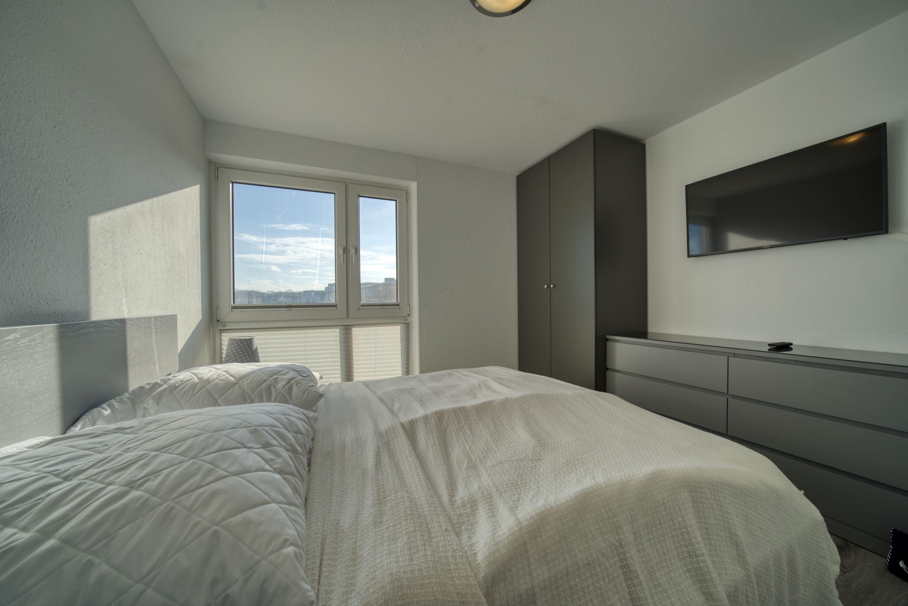 Separates Schlafzimmer mit Doppelbett und Fernseher – für erholsame Nächte