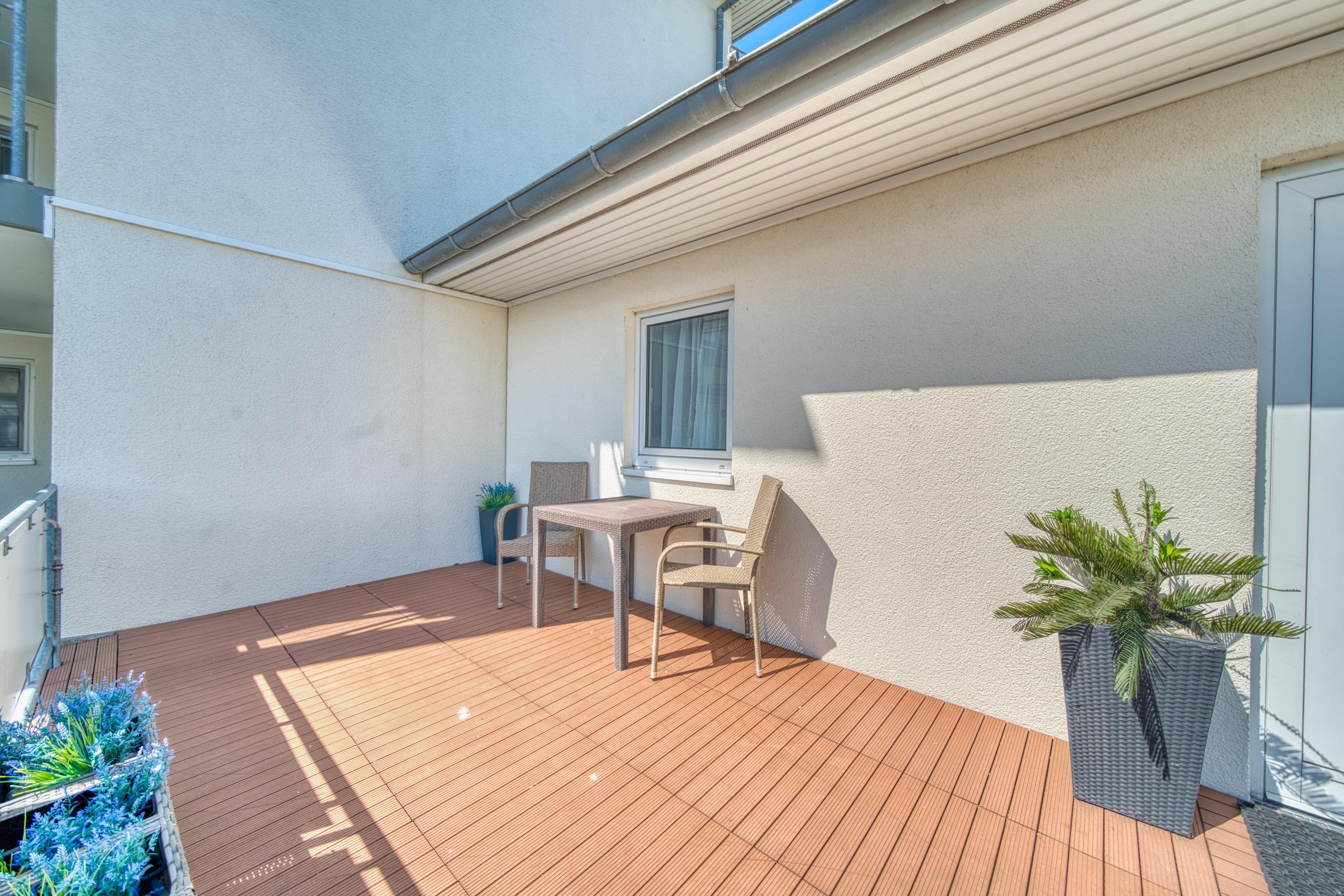 Die Südterrasse mit Loungebereich bietet ideale Bedingungen für ein ausgiebiges Sonnenbad.