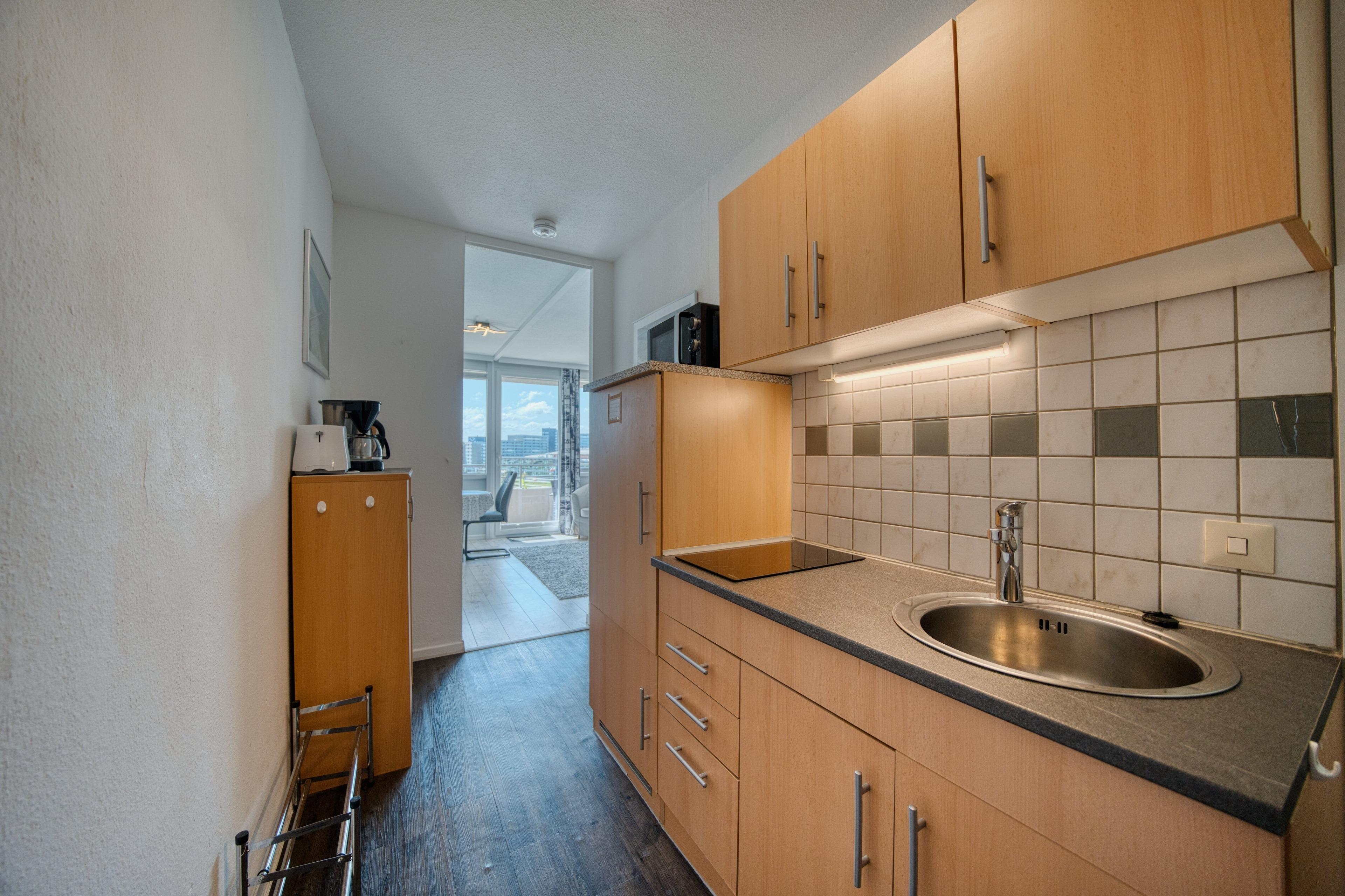 eine voll ausgestattete Kochnische mit allem, was Sie für Ihre Urlaubsmahlzeiten benötigen