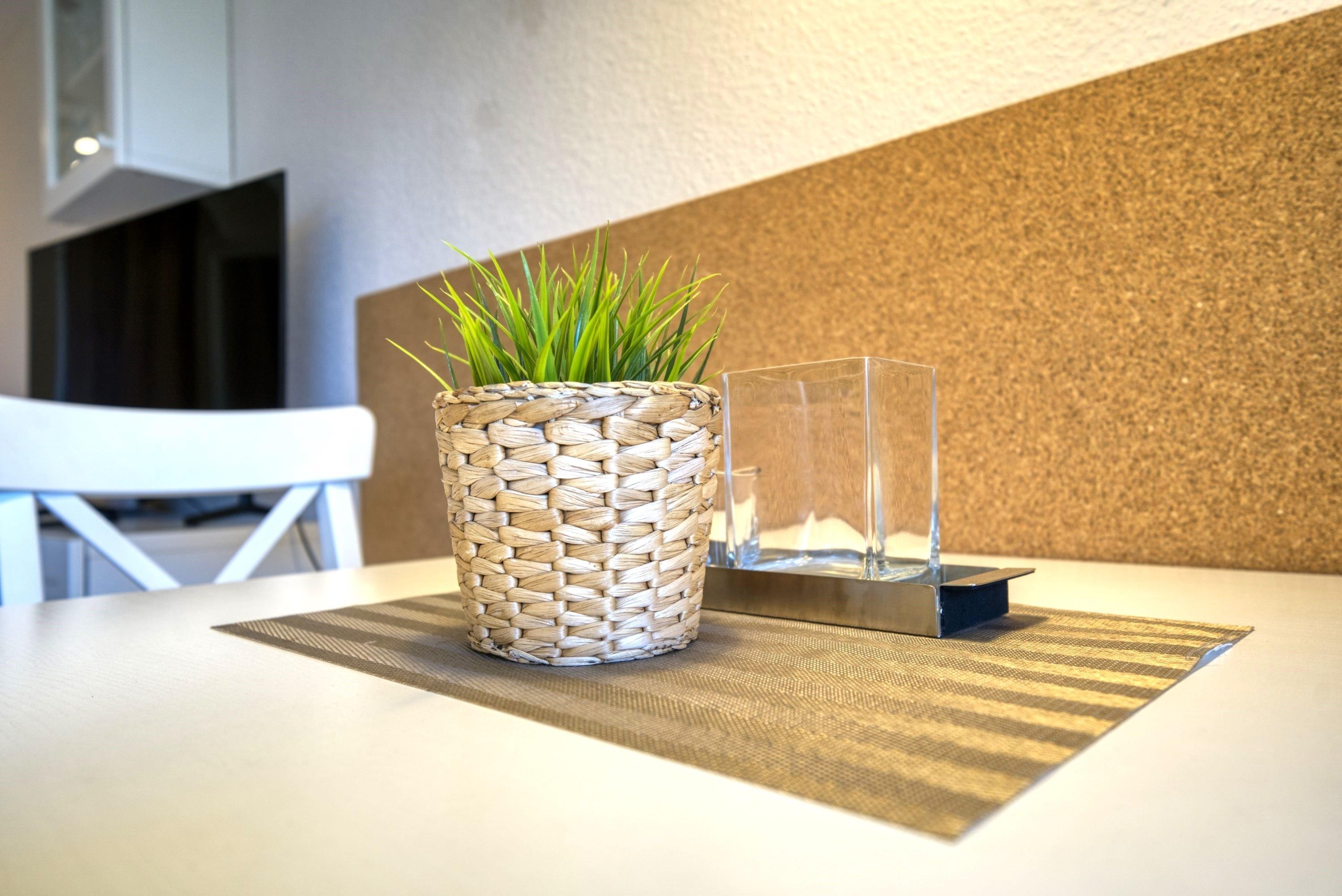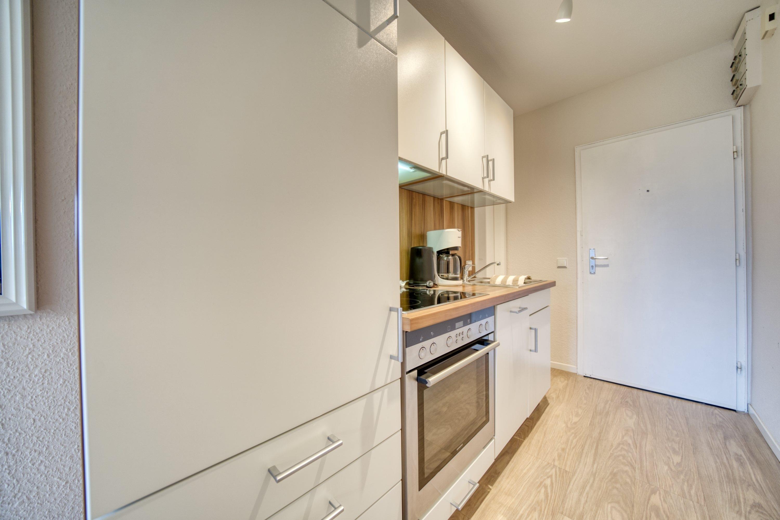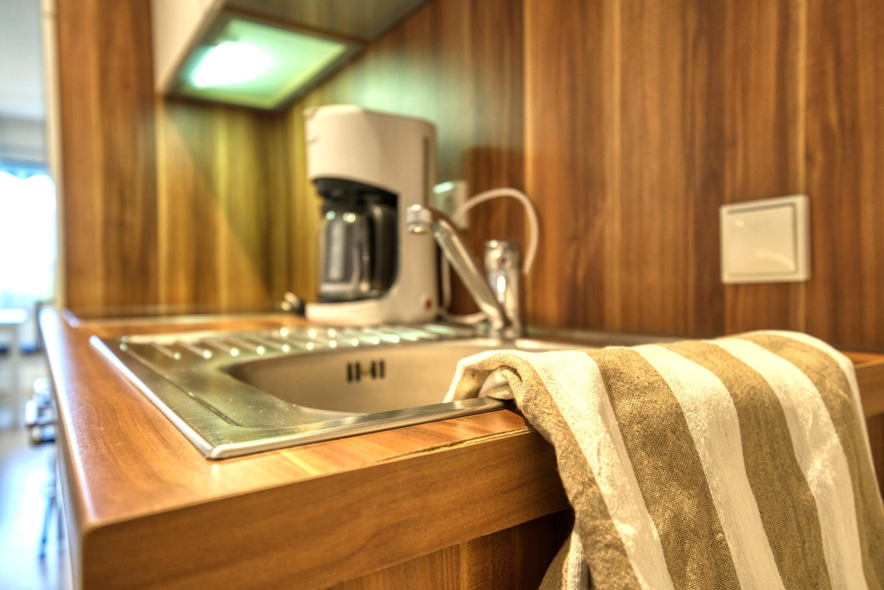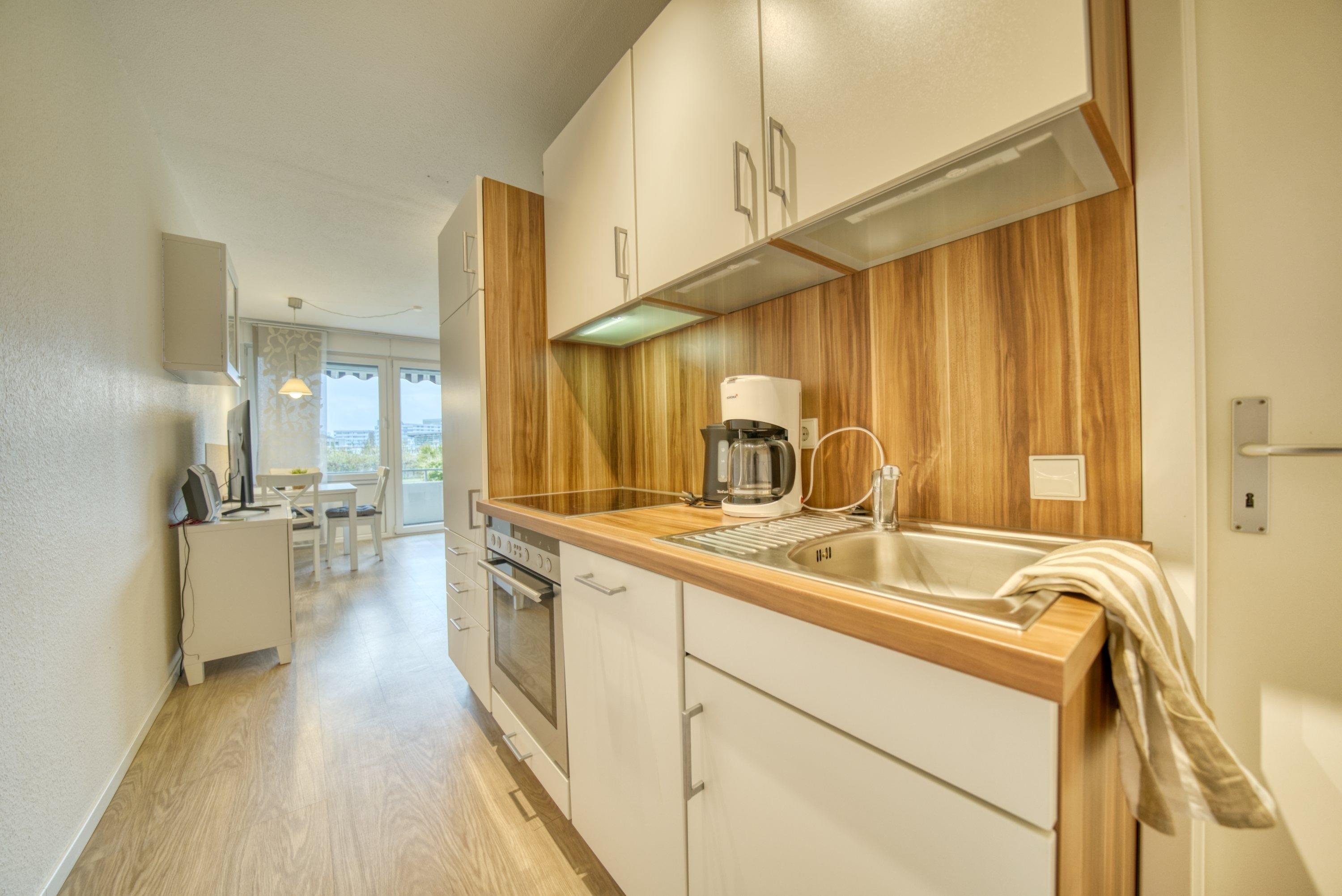 Küche: Modernisiert, mit Backofen, Geschirrspüler, Wasserkocher und Kaffeemaschine