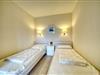 Schlafbereich: Zwei Einzelbetten, abtrennbar mit Vorhang zum Wohnzimmer