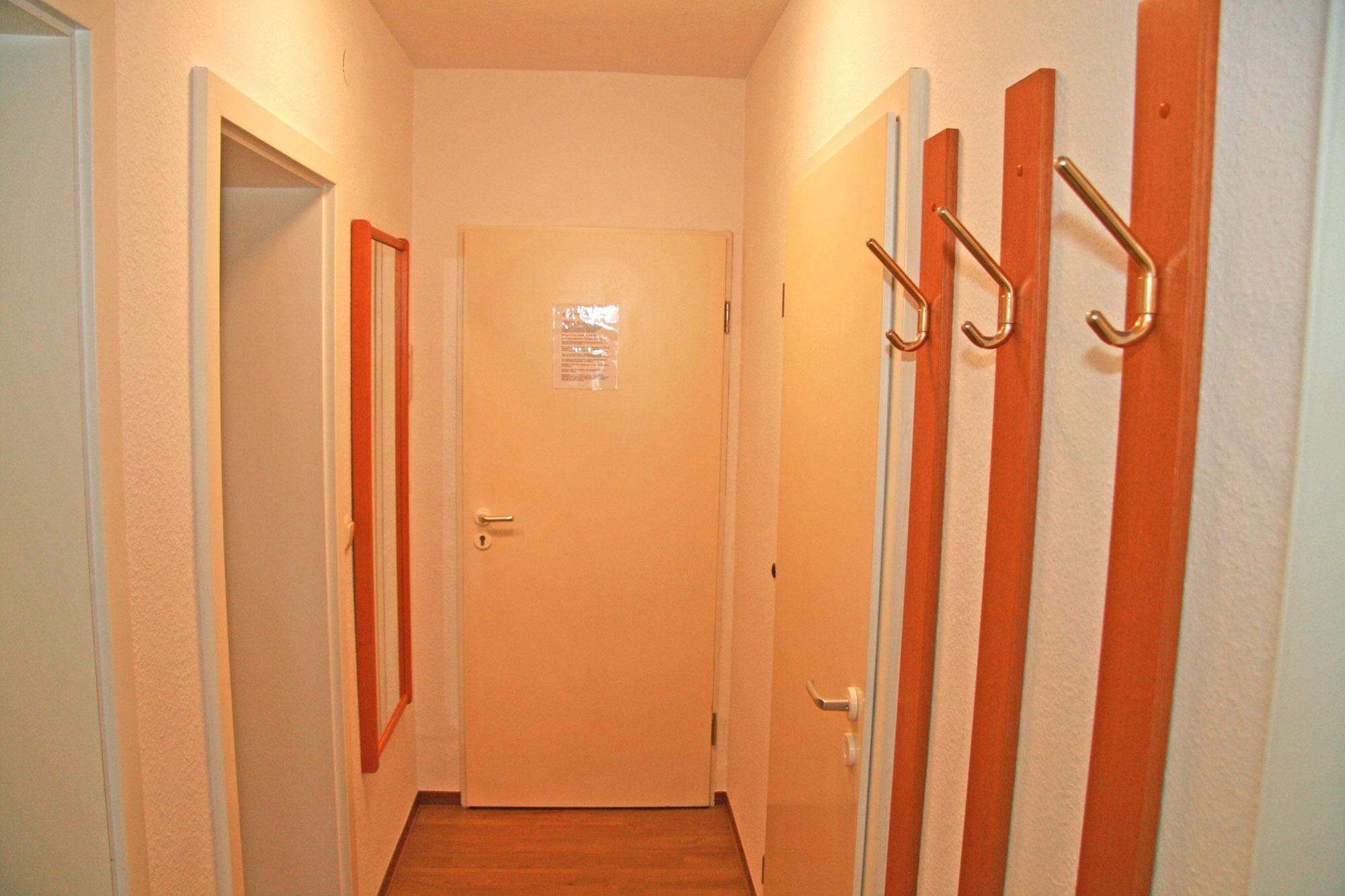 Das helle, moderne Duschbad mit WC sorgt für zusätzlichen Komfort. Pflegeleichte Böden tragen zum Wohlfühlambiente bei. Eine gemeinschaftlich nutzbare Waschmaschine, ein Trockner und eine Gefriertruhe stehen allen Gästen des Hauses kostenlos zur Verfügung. Ein eigener Abstellraum innerhalb der Wohnung hält außerdem ein Bügeleisen, ein Bügelbrett und einen Wäscheständer bereit.