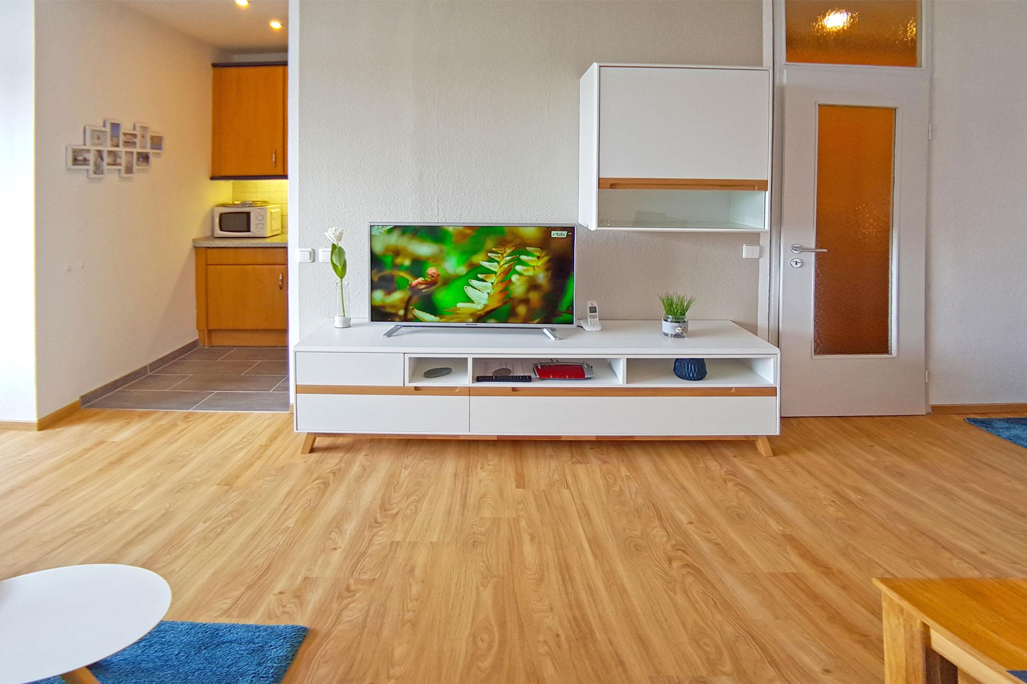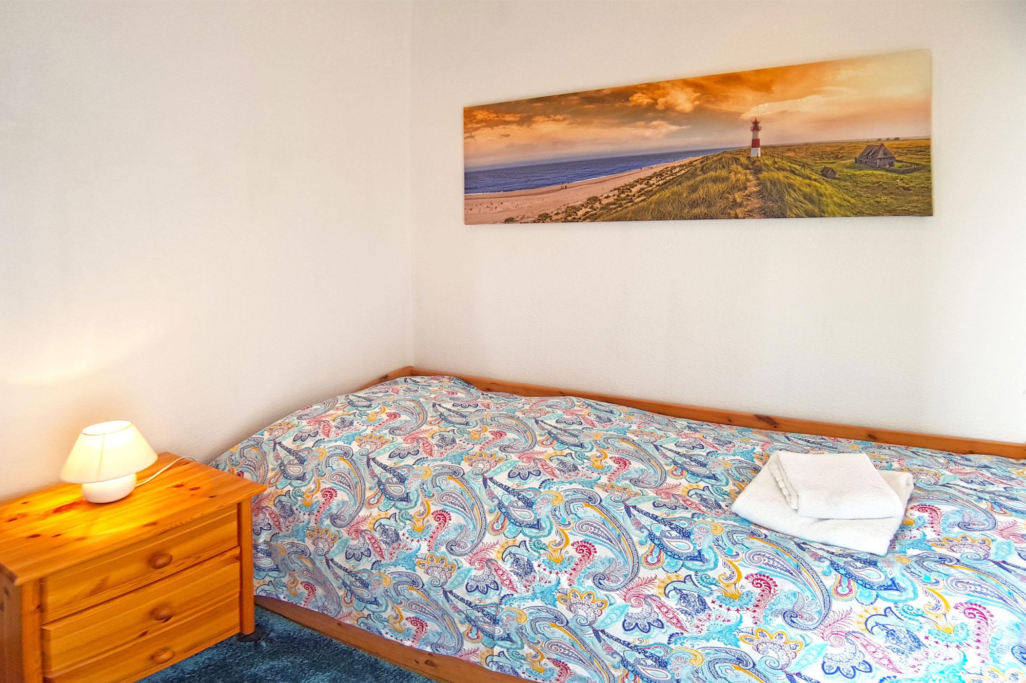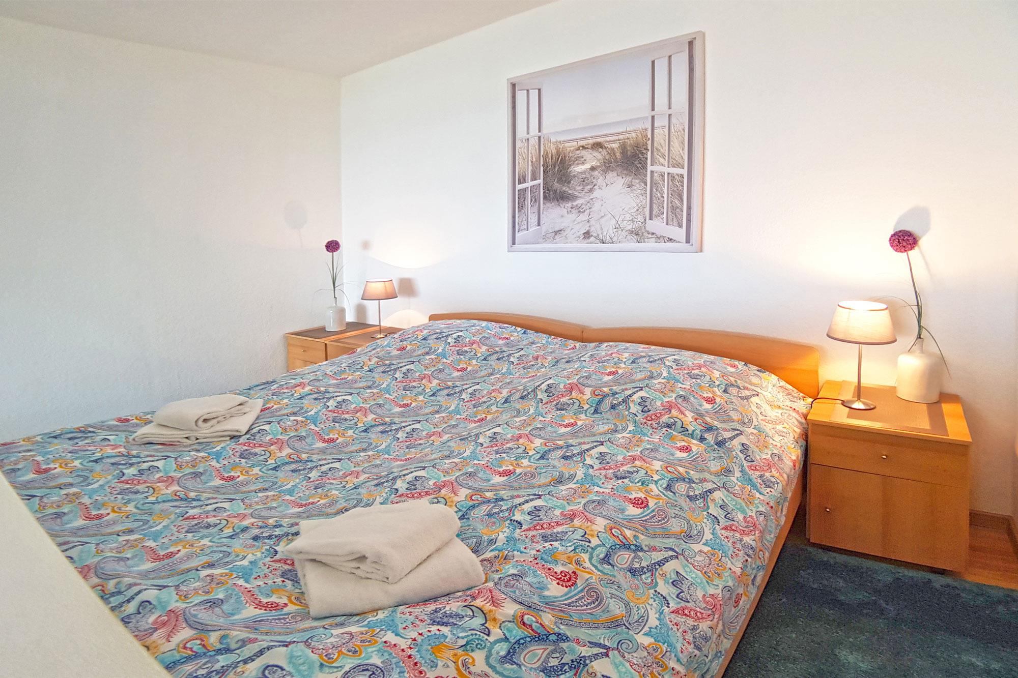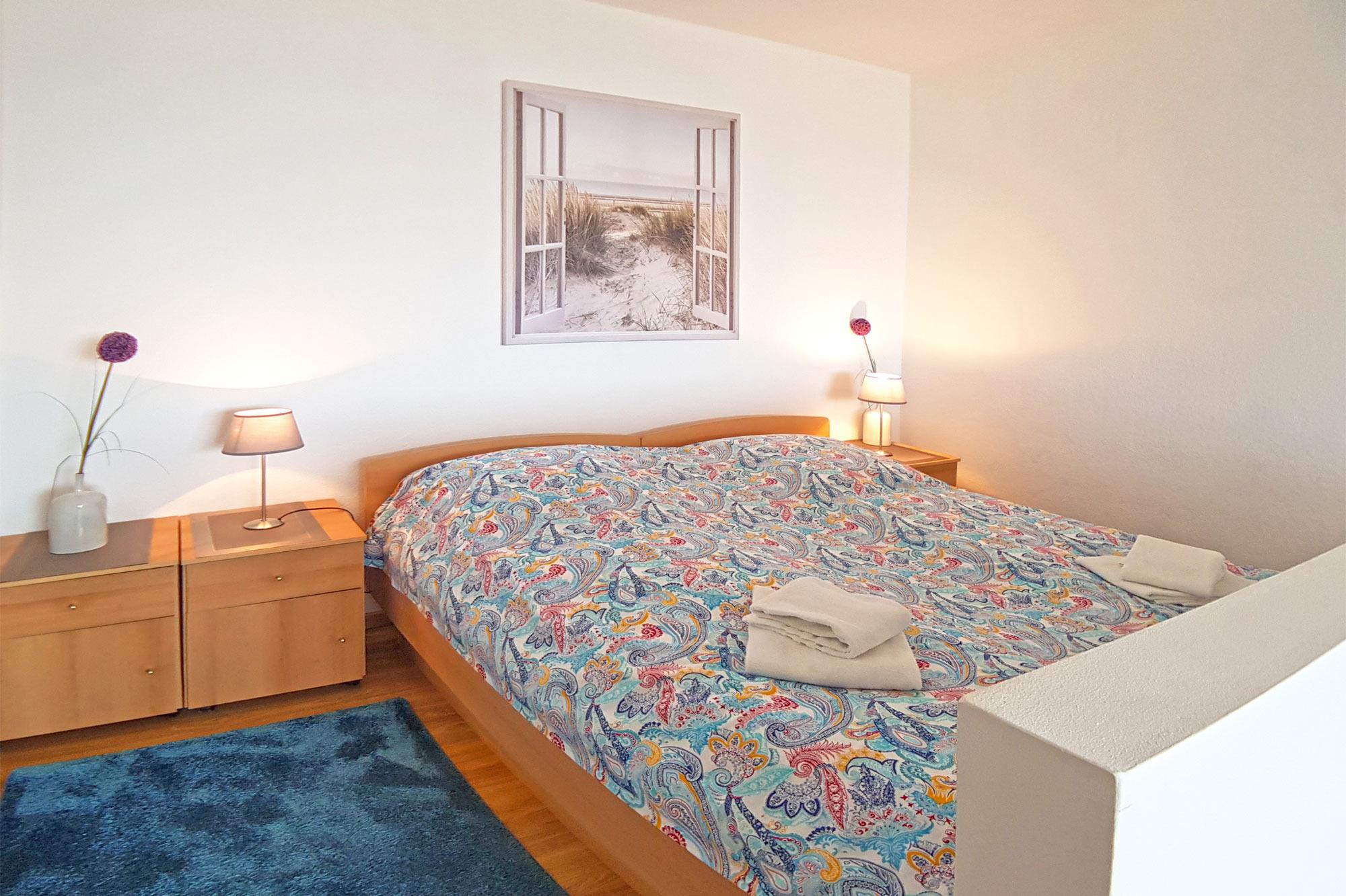 Zeitgemäße Annehmlichkeiten im hellen Wohnbereich mit Couch, TV, WLAN und pflegeleichten Böden sind selbstverständlich und sorgen für Komfort. Für die nächtliche Ruhe steht Ihnen ein vom Wohnbereich abgetrennter Schlafbereich mit Doppelbett mit Einzelmatratzen zur Verfügung. Ein weiteres kleines Schlafzimmer hält ein Einzelbett bereit. Optionale Bettwäsche und Handtuchsets sind für Allergiker geeignet und gg. Gebühr möglich. Für Verdunklung sorgen blickdichte Vorhänge.