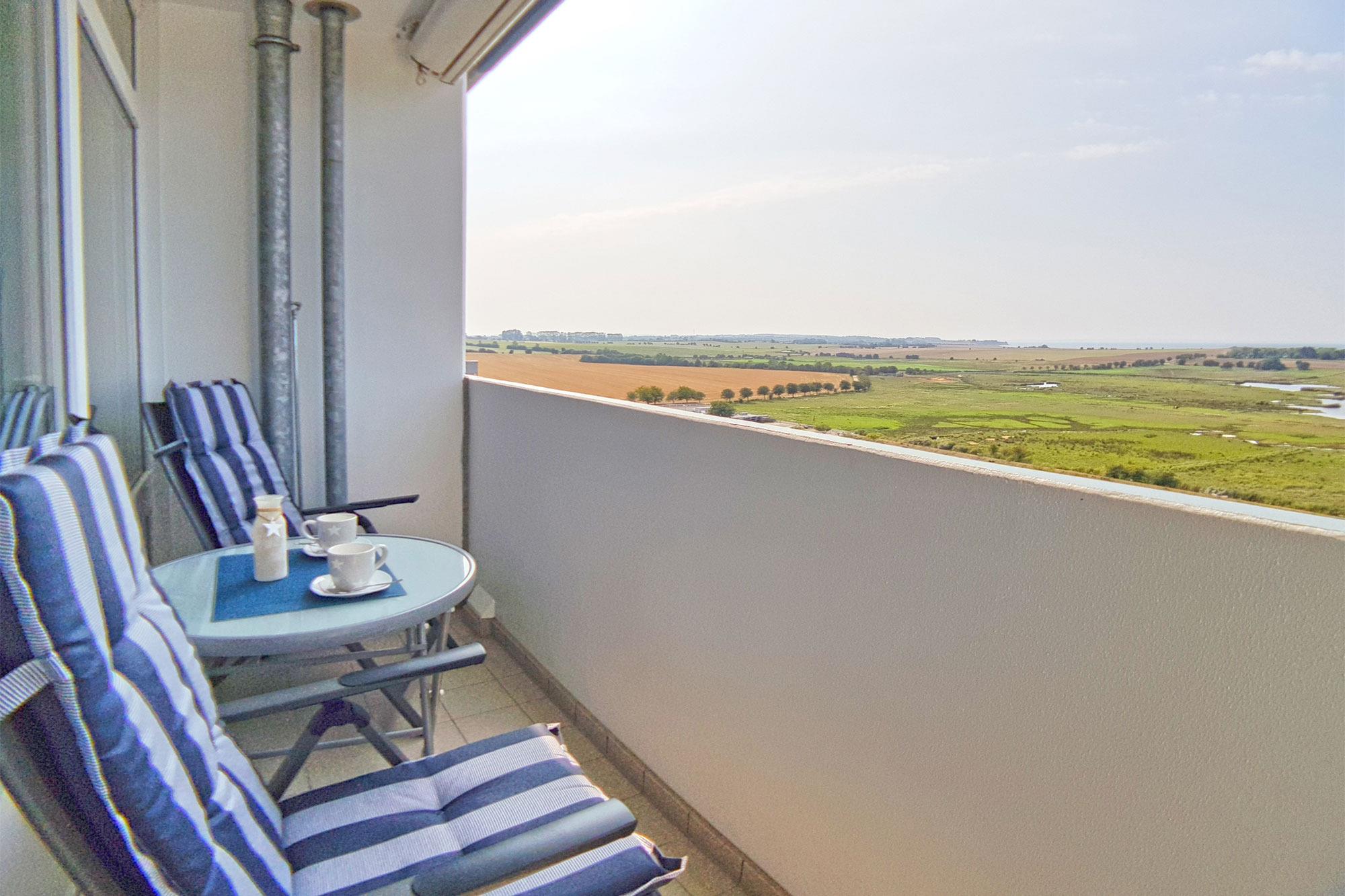 Im Flur mit Garderobe ist der große Kleiderschrank untergebracht. Hier passt wirklich alles für den Urlaub rein! Auf dem kleinen möblierten West-Balkon mit Markise genießen Sie bei traumhaften Panorama eine gute Tasse Kaffee oder ein kühles Glas Wein. Der Sonnenuntergang ist traumhaft! Die Ferienwohnung erreichen Sie bequem vom Parkplatz hinter dem Ferienpark. Zugang zur Wohnung haben Sie über Fahrstuhl oder Treppe.