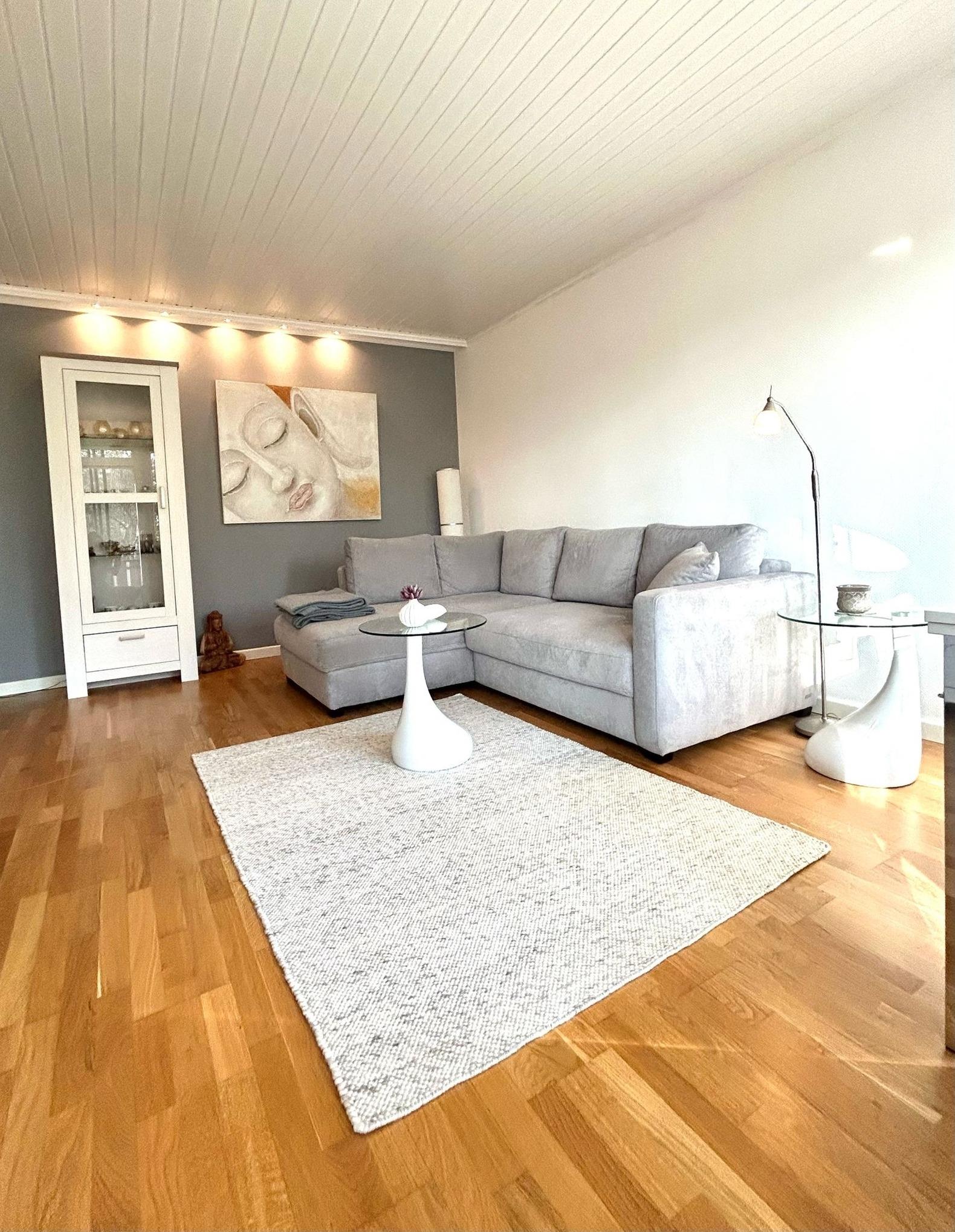 Das Apartment befindet sich in der 1. Etage des gepflegten Hauses "Bellevue" und zeichnet sich durch seine helle und moderne Einrichtung aus, die bereits beim Betreten der Tür direkt ins Auge springt. Auf einer Fläche von ungefähr 46qm befindet sich das liebevoll gestaltete Wohnzimmer mit einer gemütlichen Couch, einem Fernseher und einem kleinen Esstisch. Von hier aus gelangt man auf den großzügigen Südbalkon, der dank seiner Lage zum Hinterhof ausreichend Ruhe bietet, um sich zu erholen.