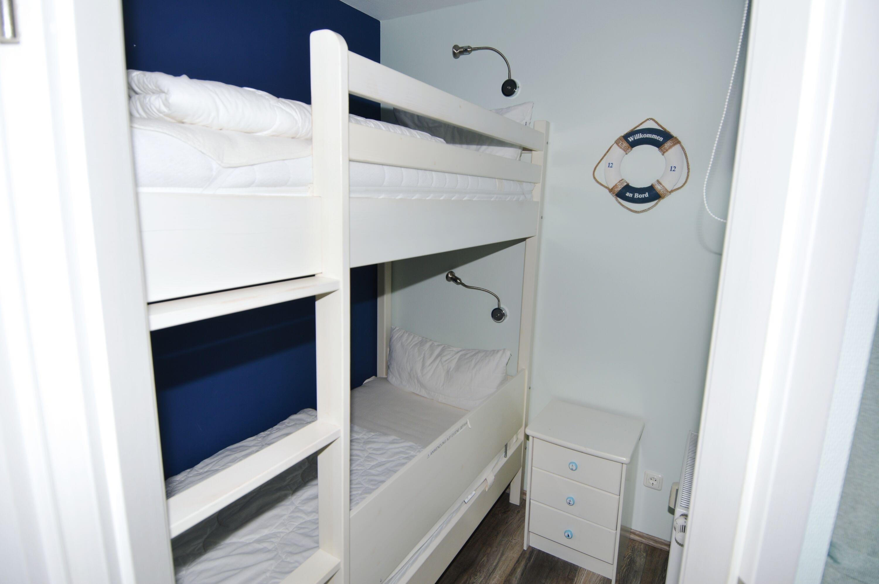 Für erholsame Nächte sorgt der separierte Schlafraum, der durch eine Tür abgetrennt ist. Ausgestattet mit einem komfortablen Doppelbett und einem eigenen TV, ermöglicht er den Eltern, Privatsphäre und Ruhe zu genießen. Der dazugehörige kleine Schlafraum ist perfekt für die Kinder: Das Etagenbett bietet nicht nur Schlafplatz, sondern auch einen Hauch von Abenteuer und einen eigenen Fernseher. Beide Zimmer sind liebevoll gestaltet und bieten eine einladende Atmosphäre.