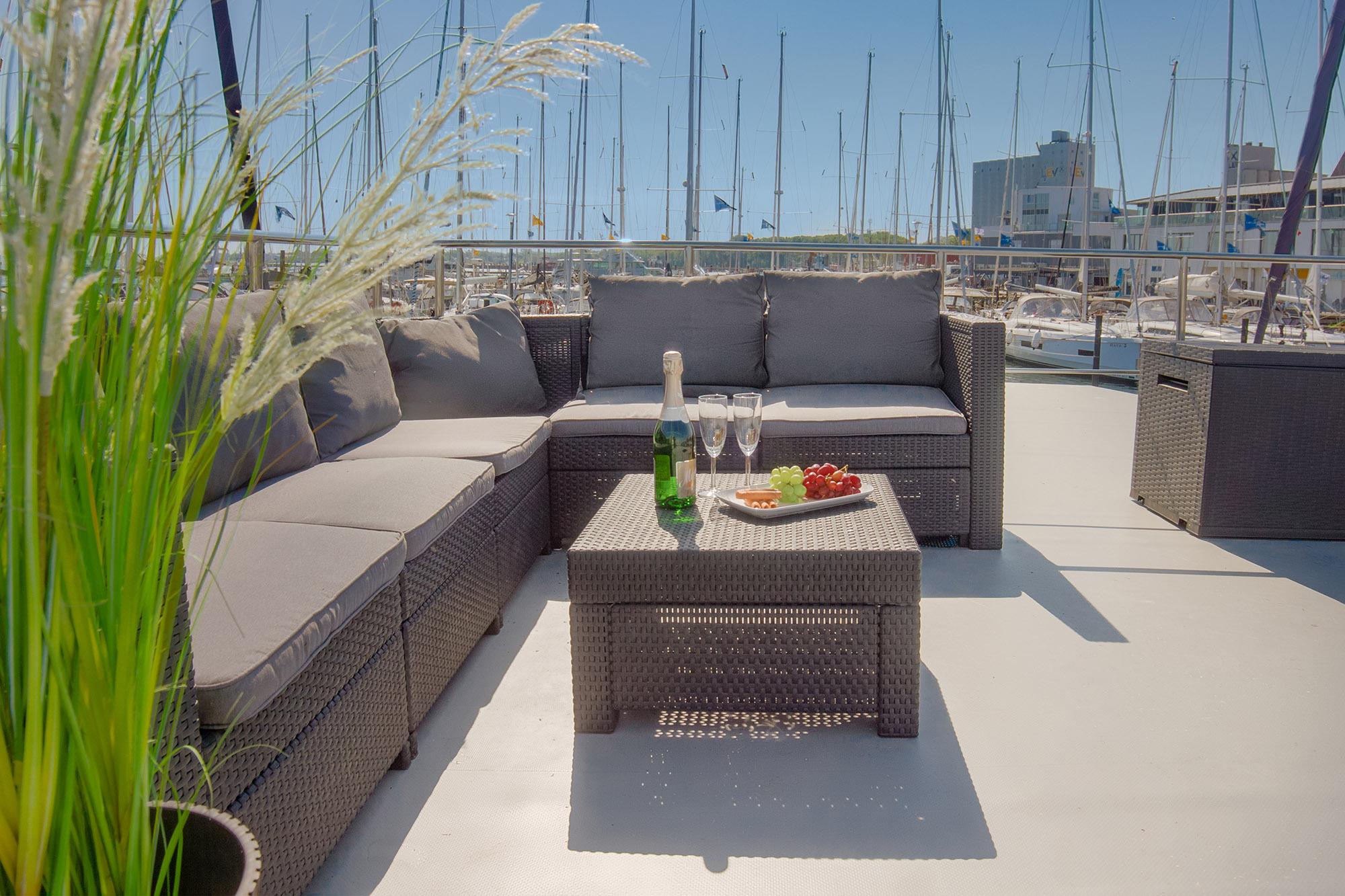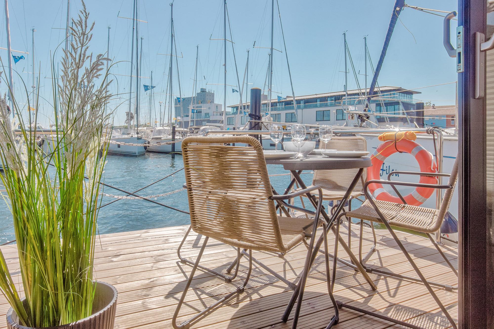 Das Hausboot Kleine Auszeit...Urlaub direkt im Jachthafen Heiligenhafen und Blick aufs oder ins Wasser!