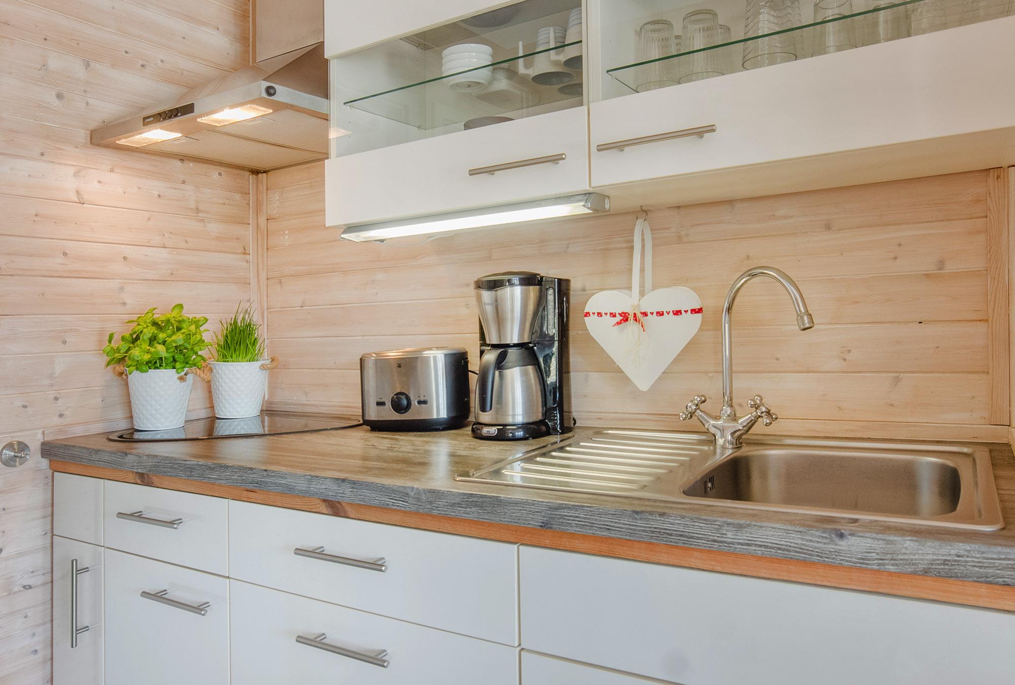 Zudem sind die sanitären Einrichtungen und Toilette am Jachthafen nutzbar. Zur weiteren Gemütlichkeit verfügt das Hausboot über eine Infrarot-Elektroheizung. Der vielseitige Essbereich und die offene Pantry-Küche mit Gasherd und Multifunktions-Mikrowelle mit Backofenfunktion stehen zur kulinarischen Entfaltung bereit. Dabei müssen Sie auf Ausblick nicht verzichten. Der Außenbereich bietet als weiteres Highlight zudem einen besonderen Clou. Essen am Relax-Heck oder auf dem Sonnendeck. Die möblierte Dachterrasse als Sonnendeck: Relaxen Sie hier nicht nur in der Sonne am Tag, sondern auch in den Abendstunden entspannt bei einem schönen Glas Wein und dem Sonnenuntergang über der Ostsee. Einfach unvergesslich!