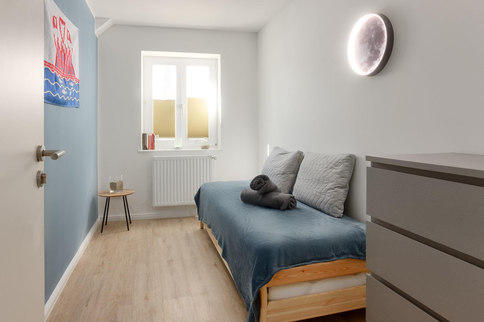 LilleHavn verfügt über maximal 4 Schlafmöglichkeiten. Es gibt ein Schlafzimmer mit Doppelbett (160x200cm) sowie ein Schlafzimmer mit Stapelbett (80x200cm) als Einzel- oder Zwei-Bettlösung nutzbar. Dadurch ist eine Belegung mit maximal 3 Erwachsenen oder 2 Erwachsenen und 2 Kindern möglich. Alle Schlafzimmer haben Plissees zum Sichtschutz bzw. zur Verdunklung.