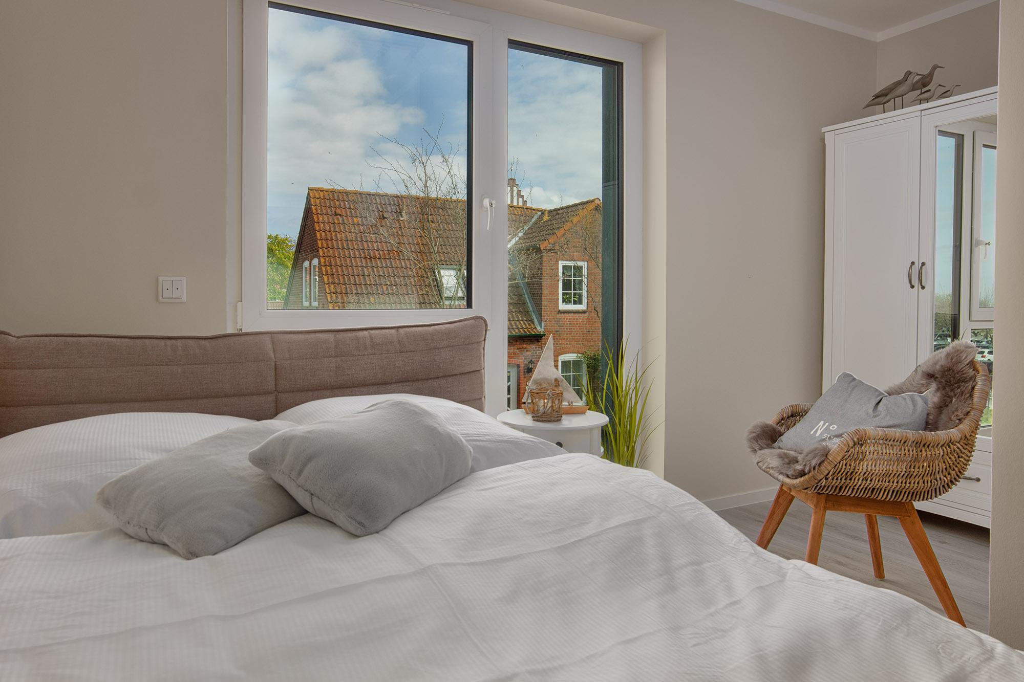 Ebenso komfortabel geht es in den zwei Schlafzimmern der Wohnung weiter. Hier erwarten Sie Doppelboxspringbetten (180x200) und ein kleinere Variante (140x200).