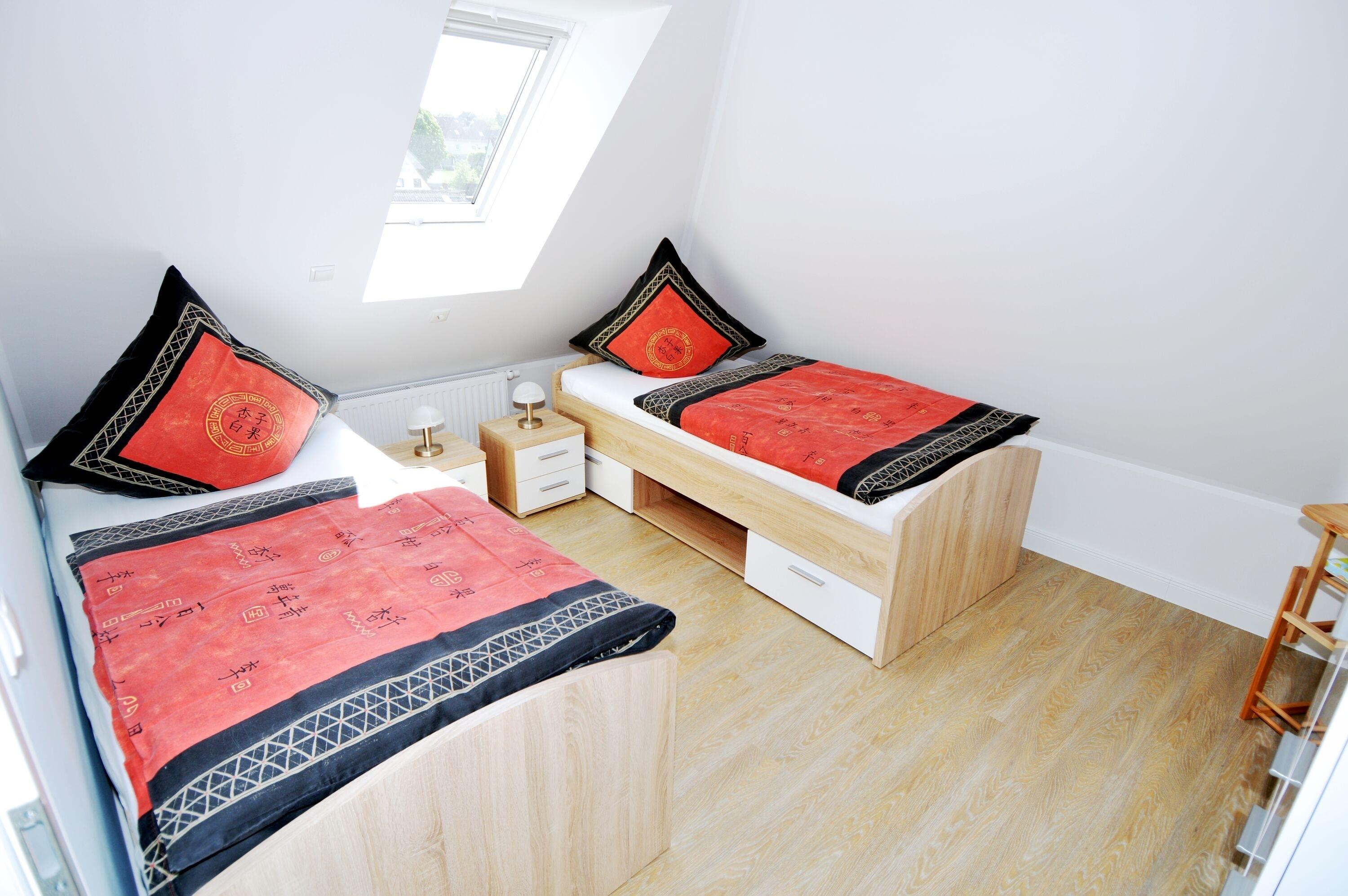 Die Ferienwohnung "Lütjenburger Weg 27 OG" liegt auf einem kleinen Stadt-Bauernhof in Heiligenhafen und wird liebevoll gepflegt. Bei der hellen und modernen Ausstattung fühlt man sich sofort wohl. Das große Schlafzimmer ist mit einem Doppelbett, Schrank und einem Fernseher ausgestattet, ein Kinderbett hätte hier auch noch ausreichend Platz. Das Kinderschlafzimmer verfügt über zwei Einzelbetten und kann natürlich auch von Erwachsenen bewohnt werden. Babybett und Hochstuhl gehören zur Ausstattung der Wohnung.