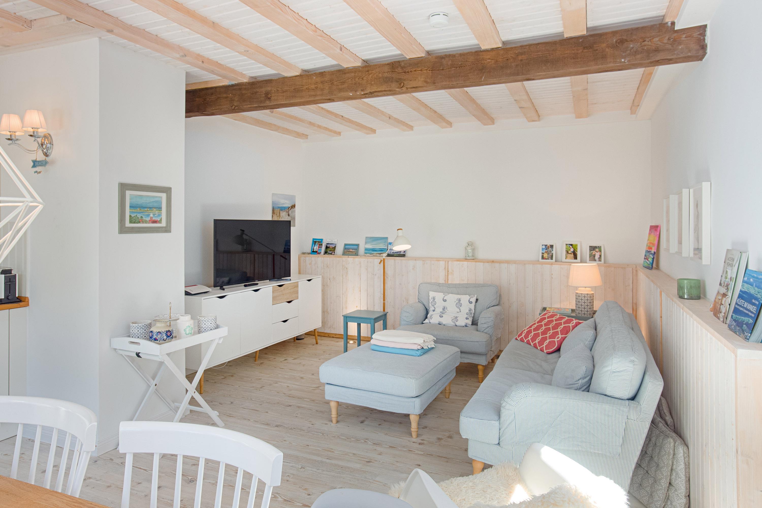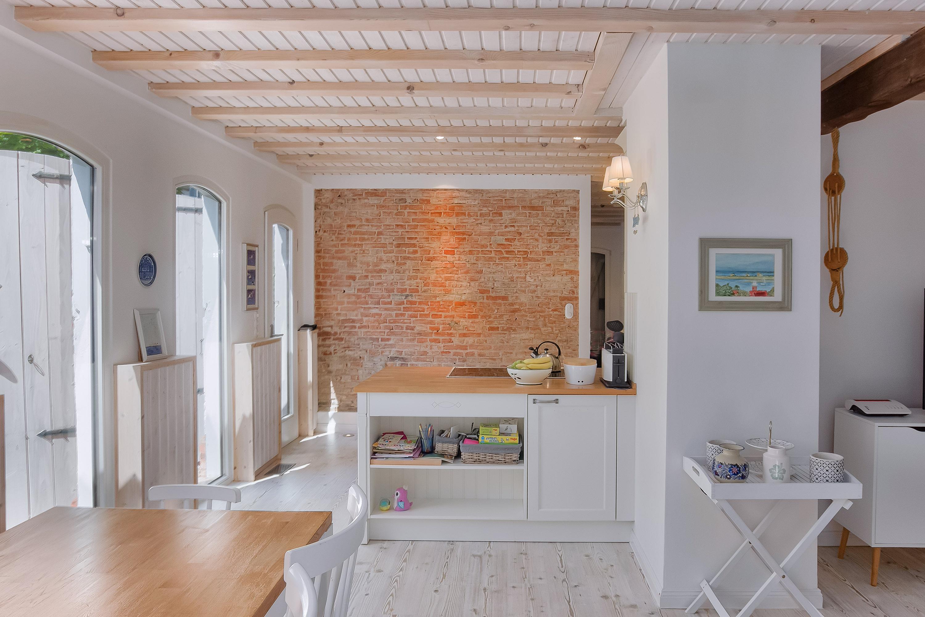 Die offene und voll ausgestattete Küche direkt neben dem Wohnbereich bietet Ihnen während Ihres Aufenthaltes alle Annehmlichkeiten. Der Essbereich ist hier direkt angeschlossen. Damit müssen Sie auch im Urlaub auf Wohnkultur nicht verzichten. Für die eigene Versorgung ist der Marktplatz in 400 m und der Hafen in nur 300 m schnell erreicht. Zur Seebrücke und Strand sind es ebenfalls nur ca. 1.000 m.