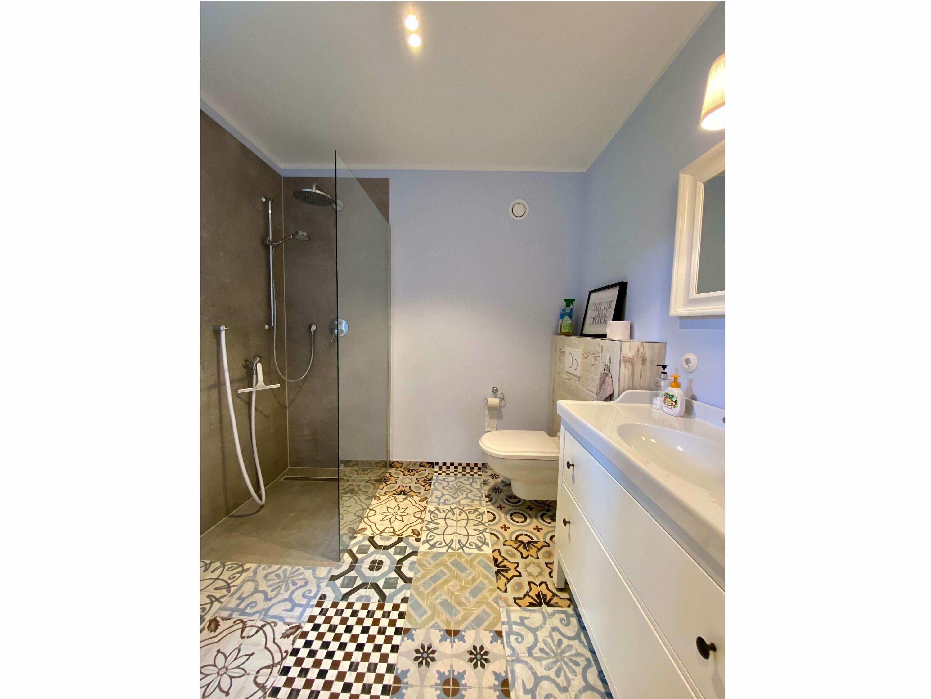 Von den Schlafzimmern erreichen Sie bequem die zwei modernen Badezimmer mit Fussbodenheizung, ebenerdigen Duschen, 1x Wanne, Handtuchwärmer, Waschbecken und WC. Eine integrierte Sauna steht zur Nutzung bereit. Hier erfrischen Sie sich ganz leicht und holen sich die Entspannung von einem ereignisreichen Urlaubstag zurück. Ein Waschtrockner gehört ebenfalls zur Ausstattung.