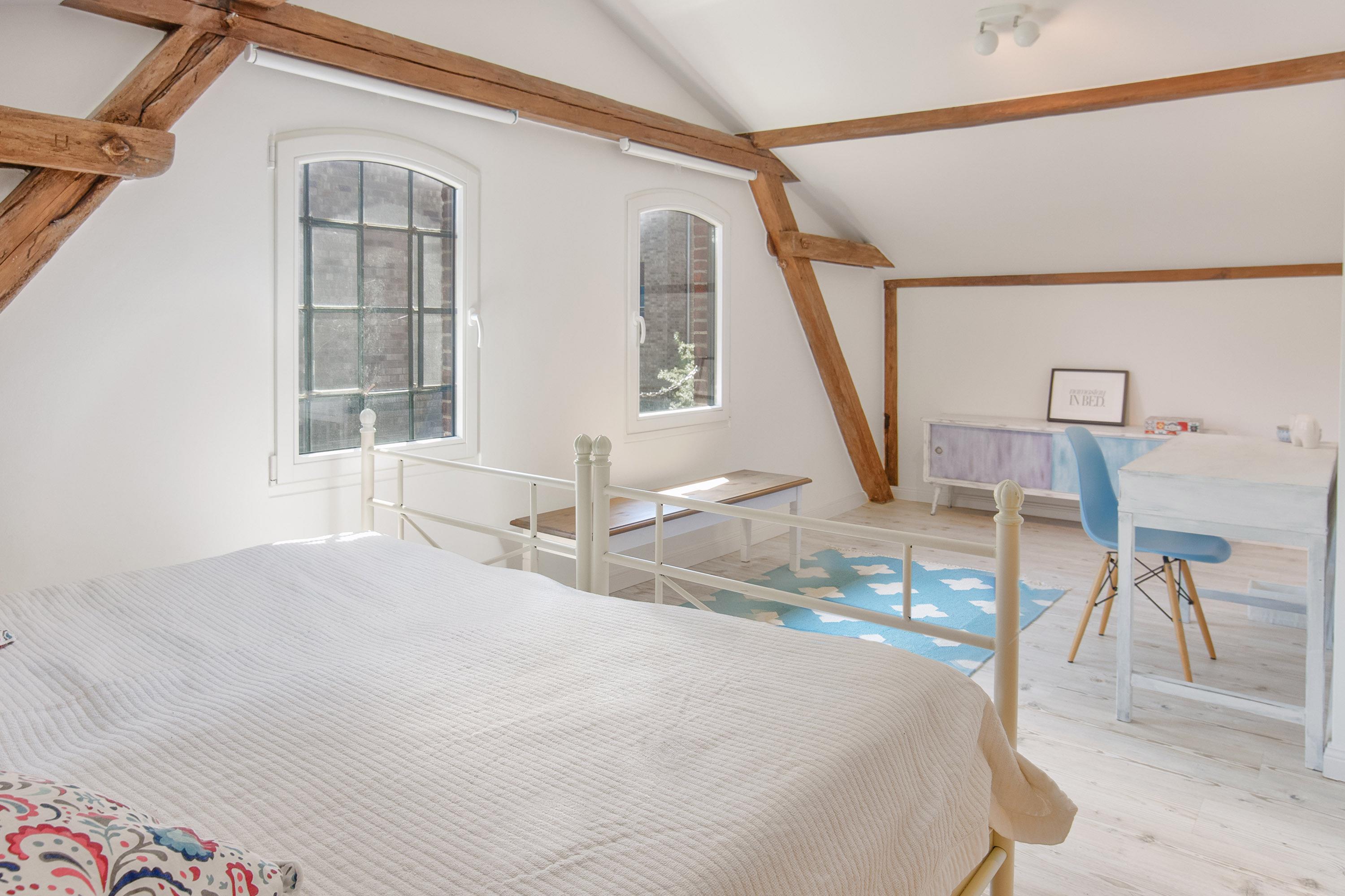Dieses hochklassige Ferienhaus Remise bietet auf ca. 130 m² Wohnfläche über zwei Ebenen jede Menge Raum bis 8 Personen (maximal 6 Erw + 2 Ki). Das Kulturdenkmal Remise aus der zweiten Hälfte des 18. Jahrhunderts im Fachwerkstil und diese darin neu geschaffene, attraktive Ferienunterkunft zeigen, dass alt und modern mit zeitgemäßer Einrichtung wunderbar harmoniert. Sie verfügt über 4 Schlafzimmer und 2 Badezimmer, was sie ideal für Familien macht.
