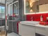 Das Wohlfühl-Badezimmer mit Fenster, ebenerdiger Regendusche, beleuchteten Spiegelelementen und Handtuchwärmer lädt auch an ungemütlicheren Tagen zur Entspannung ein.