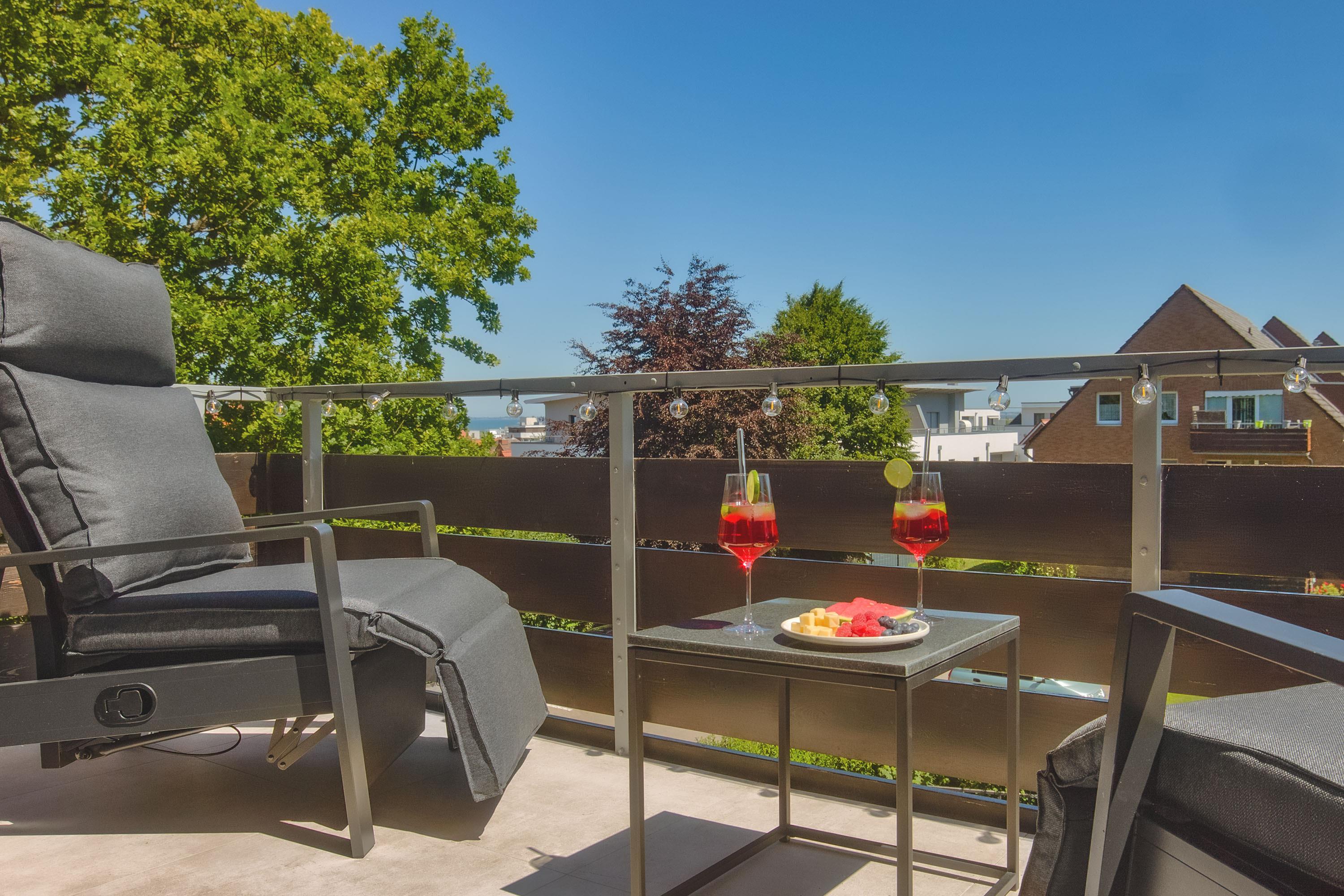 Der Balkon mit Sitzstühlen mit Liegefunktion und Ostausrichtung erlaubt unvergessliche Sonnenstunden bereits am Morgen. Elektrische Rollläden, Insektenschutz an der Balkontür oder automatisierter Beleuchtung...natürlich dabei. Dieser lädt dazu ein, den Tag mit einer Tasse Kaffee an der frischen Seeluft zu beginnen oder laue Sommerabende entspannt ausklingen zu lassen.