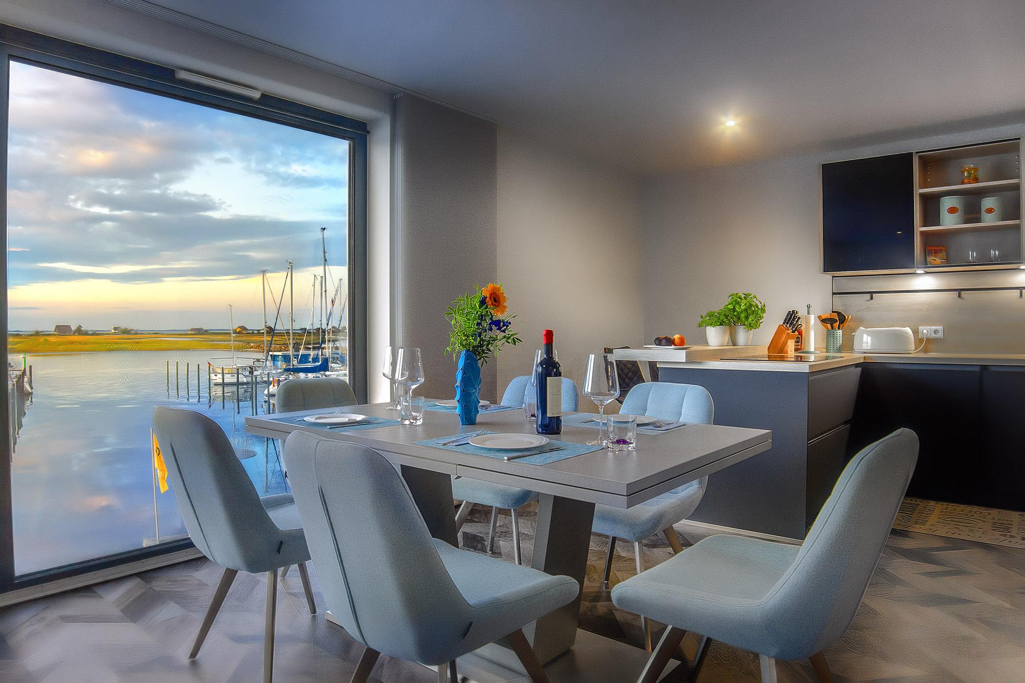 Der Essbereich direkt neben der offenen und voll ausgestatteten Küche steht zur kulinarischen Entfaltung bereit. Ob Nespresso Kapselmaschine, integriertes Abzugsfeld oder andere Küchengeräte, einfach stressless. Auch hier an der Küche finden Sie einen Minitresen mit Sitzgelegenheiten für die Gesellschaft. Dabei müssen Sie auf Ausblick nicht verzichten. Das Abendessen ist damit unvergesslich!