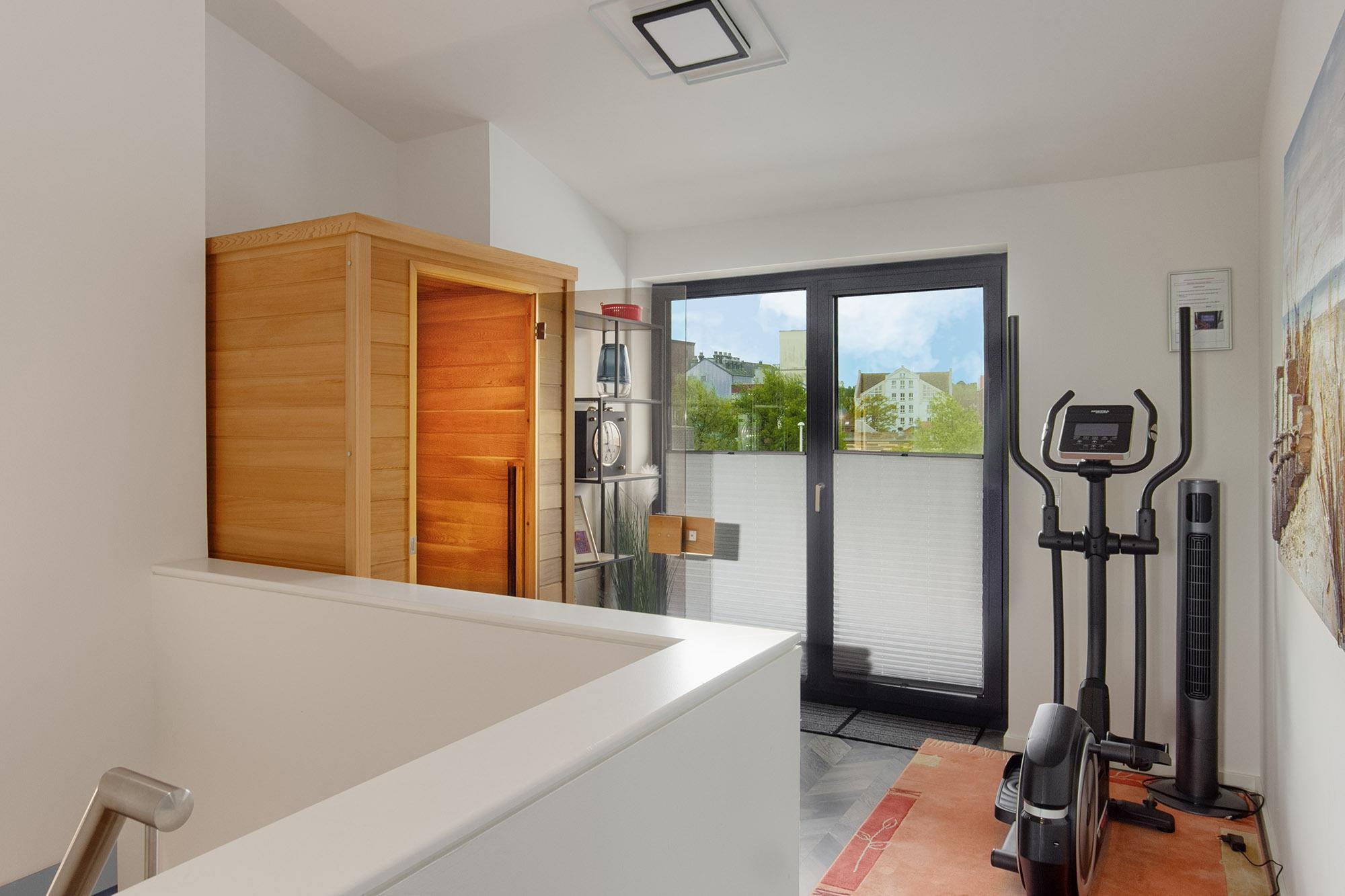 Für sportlich Aktive ist auch ein Crosstrainer in der Unterkunft und zum späteren Entspannen eine Infrarot Sauna.