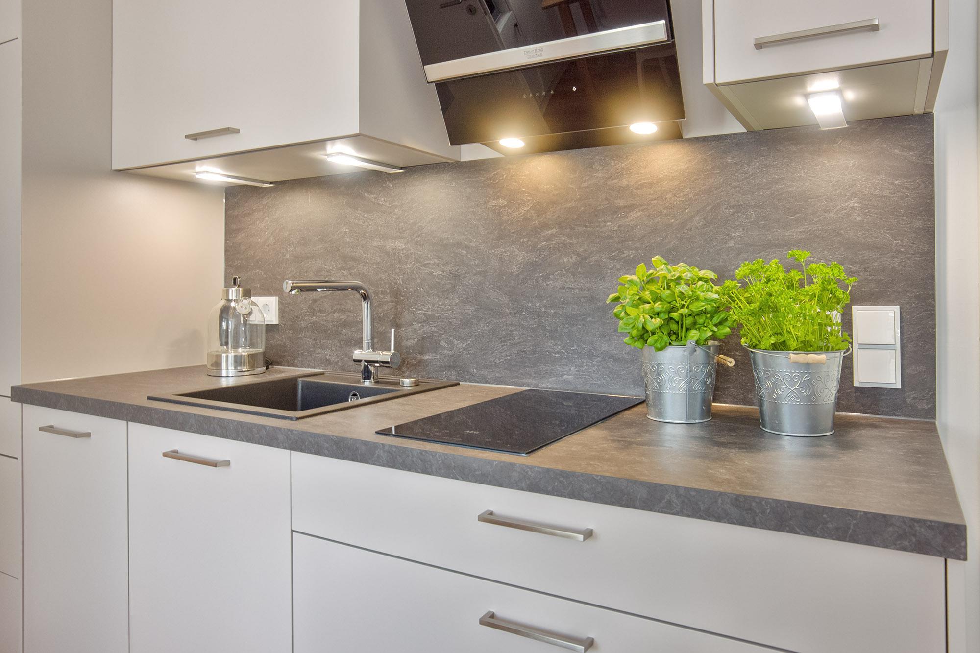Dafür bietet die Wohnküche mit großem Tisch und gemütlichen Stühlen ausreichend Platz. Die neue Küchenzeile ist mit allen Geräten und Utensilien ausgestattet.