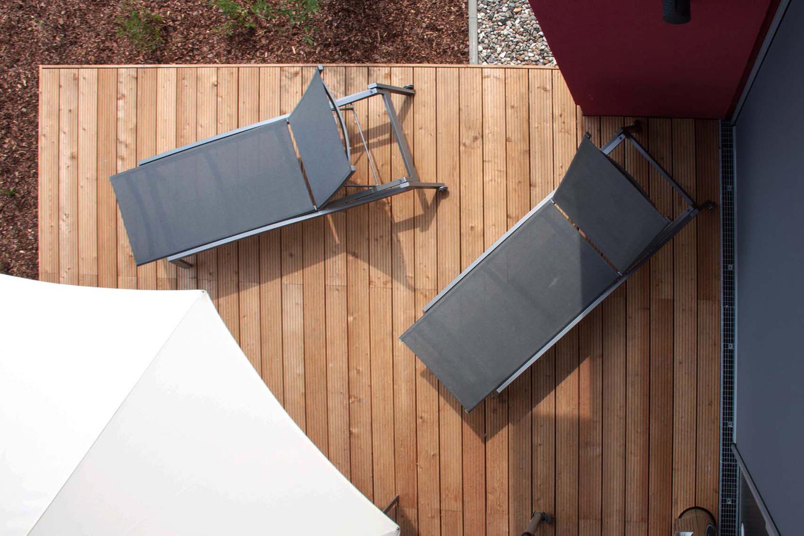 • Ruheraum bzw. 4. Schlafzimmer mit Liege-/Schlafsesseln und Terrasse