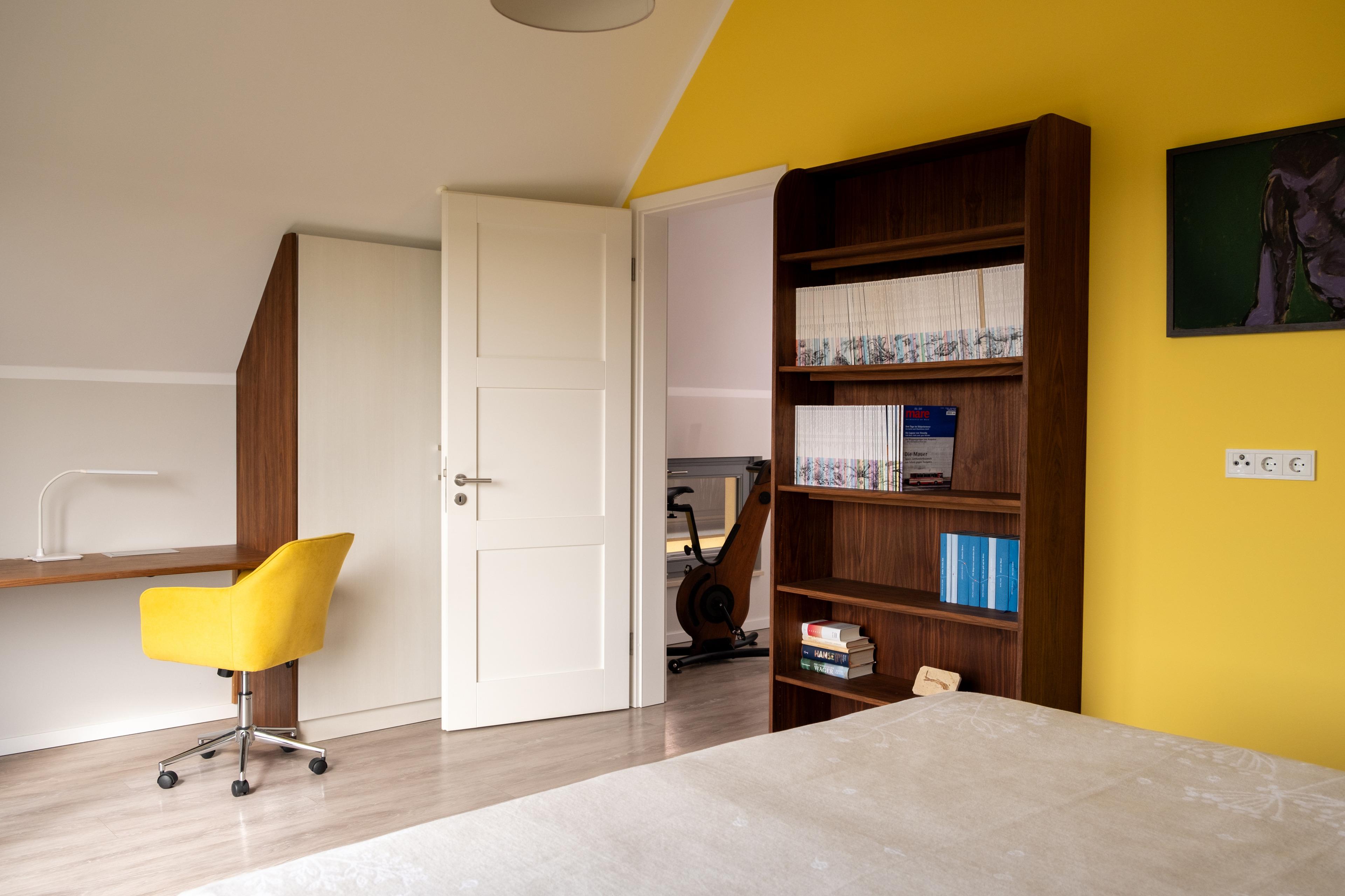 Im Parterre befindet sich ein gemütliches Arbeitszimmer mit Blick auf den Binnensee. Es ist mit einem großem Schreibtisch, einem Drucker mit Scanner und einer kleinen Bibliothek zum Thema Meer ausgestattet.