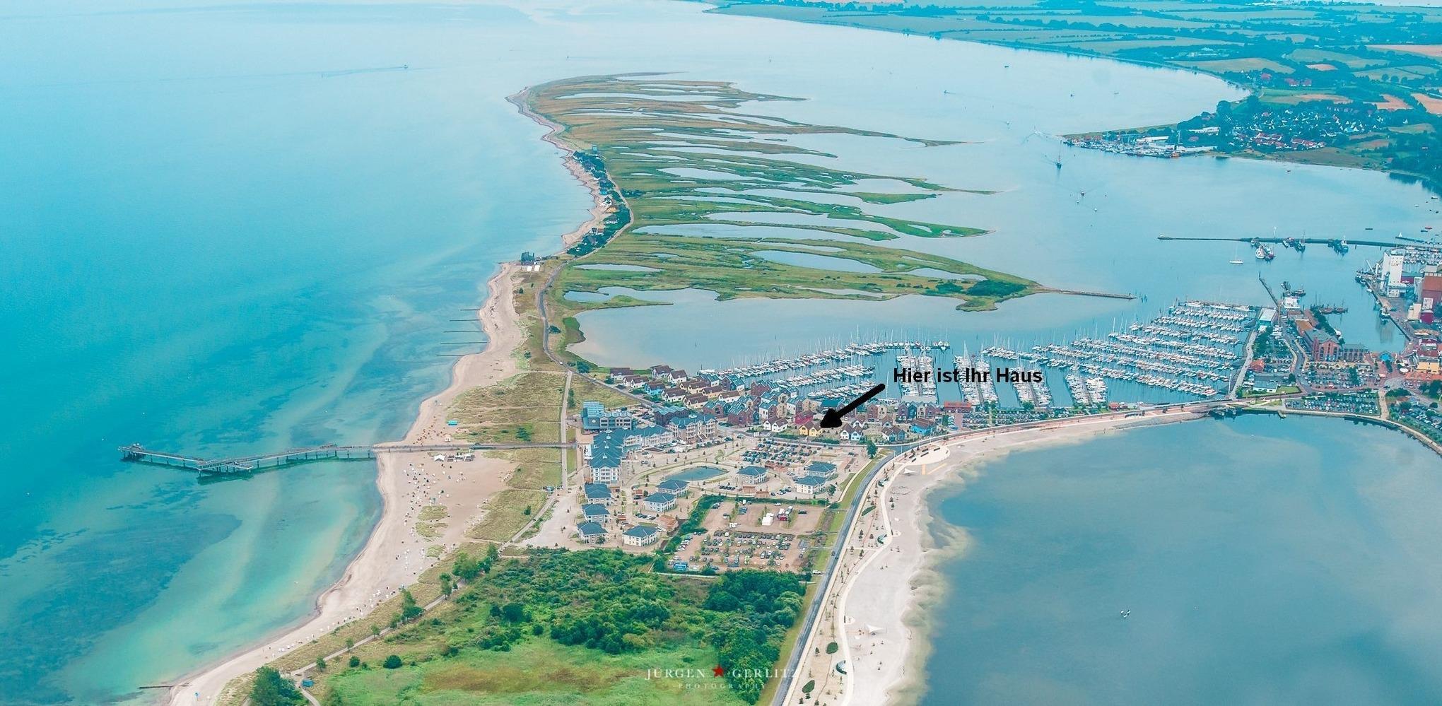 Das reetgedeckte Haus Haddock liegt im neu erbauten Marina-Strand-Ressort am Segler-Hafen des Ostseebads Heiligenhafen. Badestrand und Seebrücke sind 200 Meter entfernt, zum Yachthafen sind es 100 Meter und auch die Altstadt liegt nur 600 Meter entfernt.