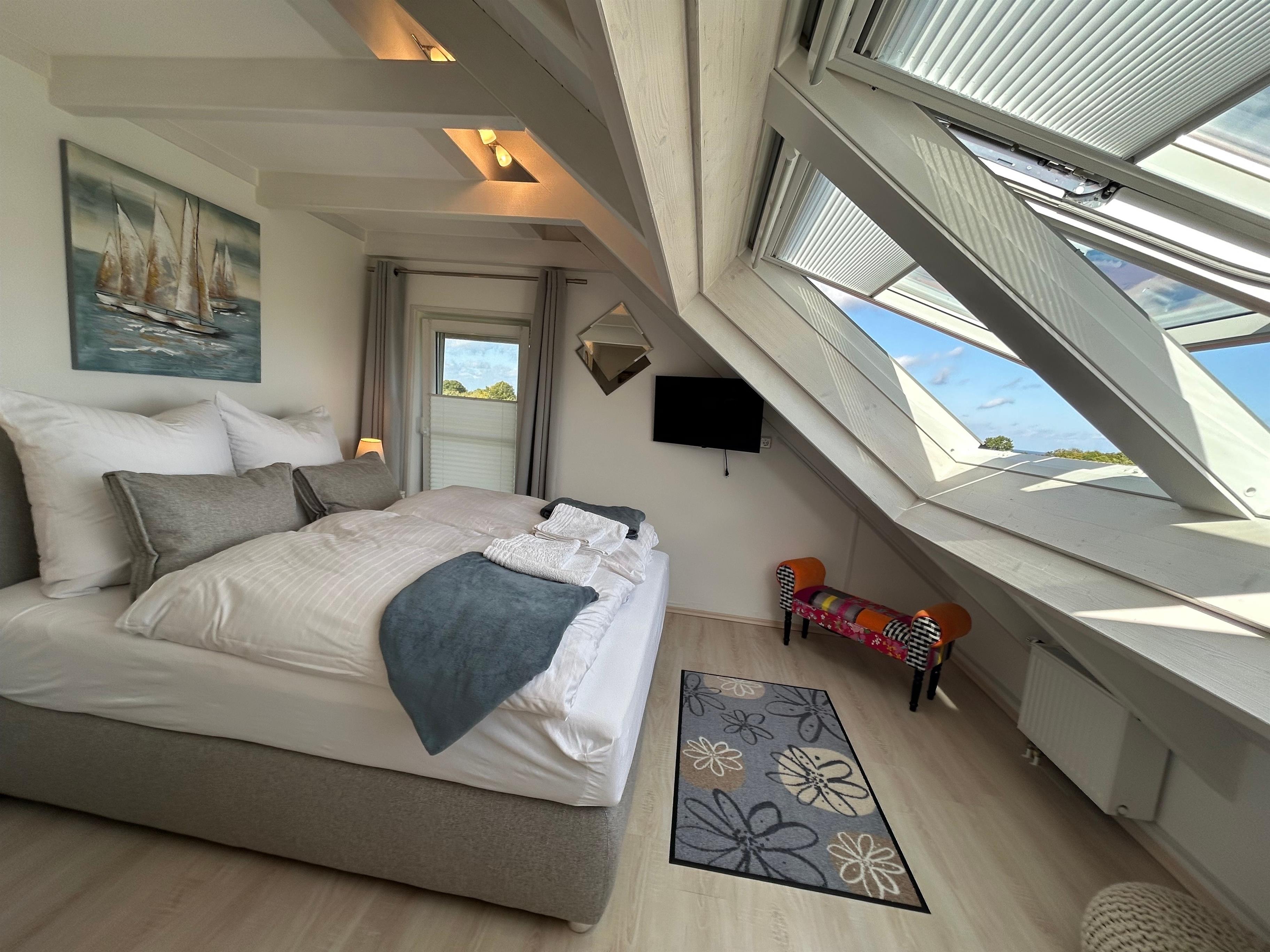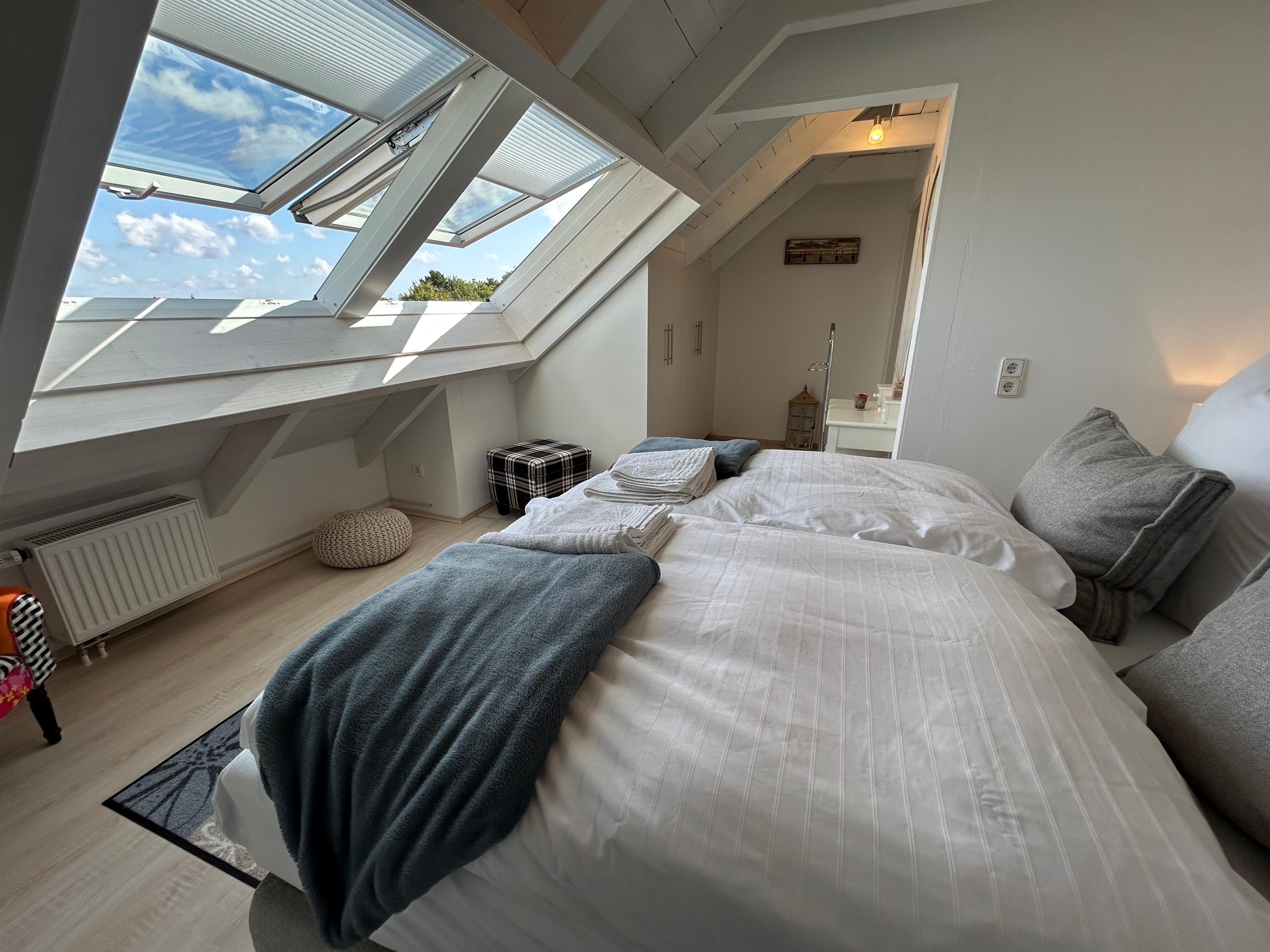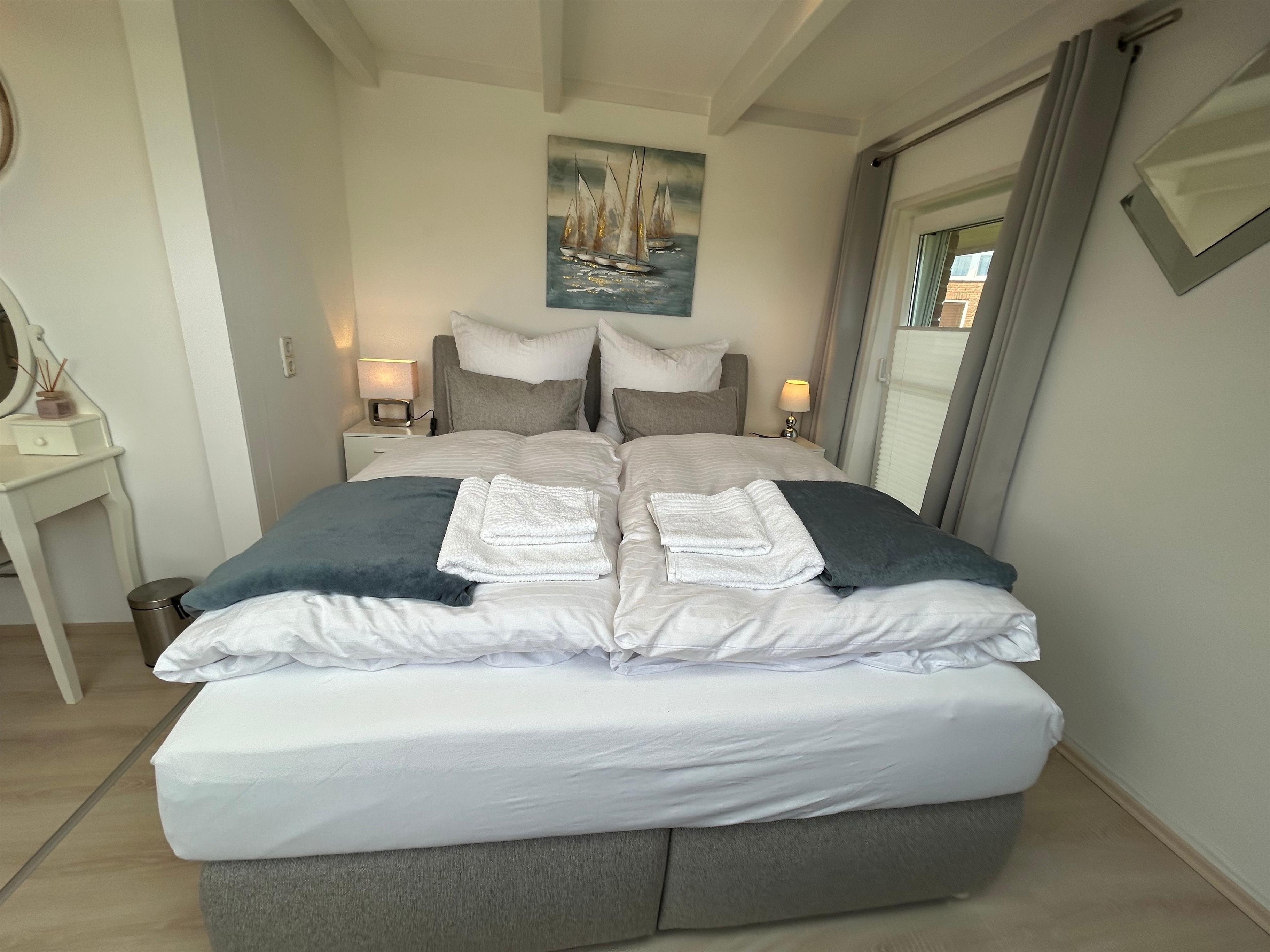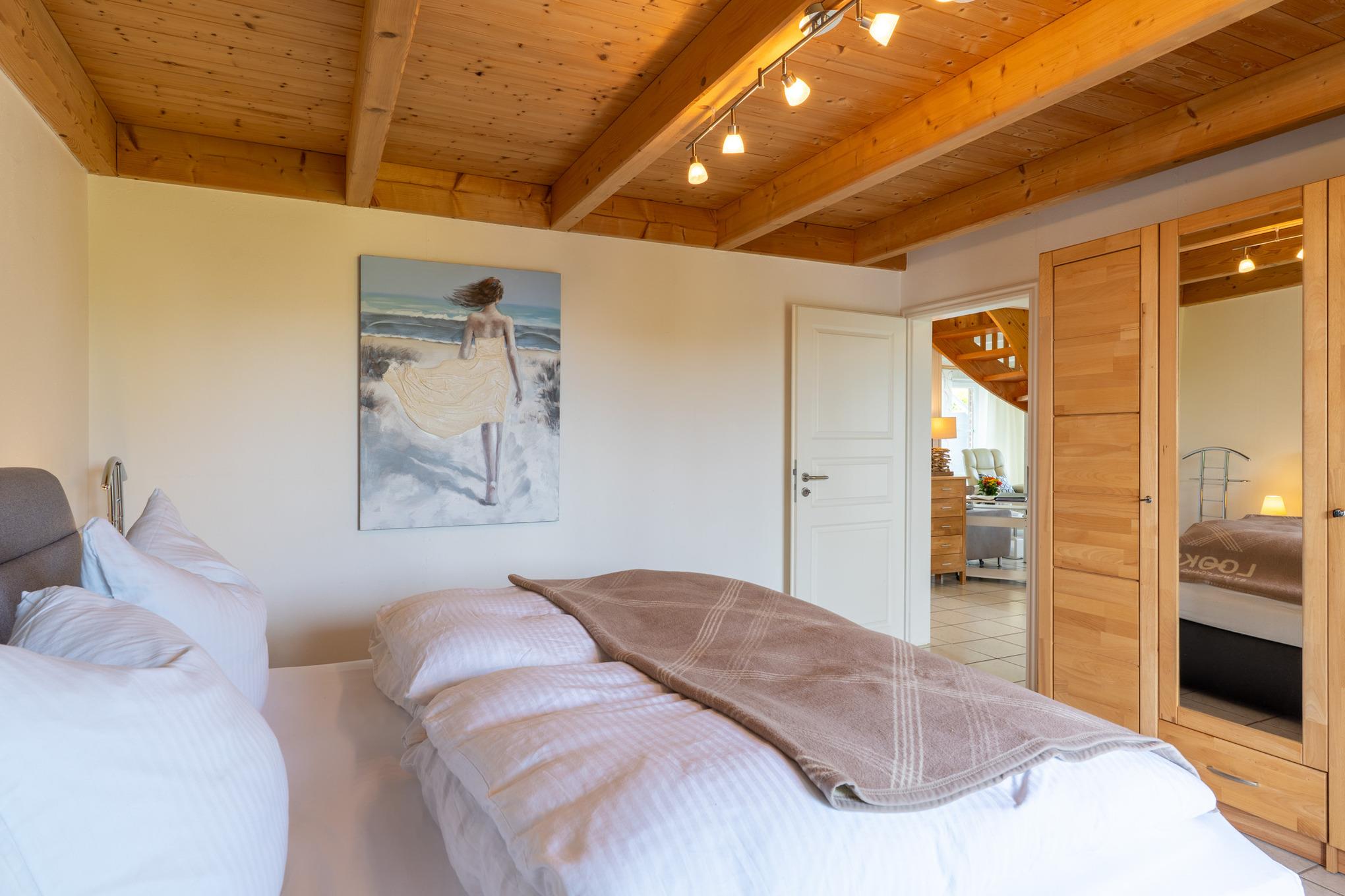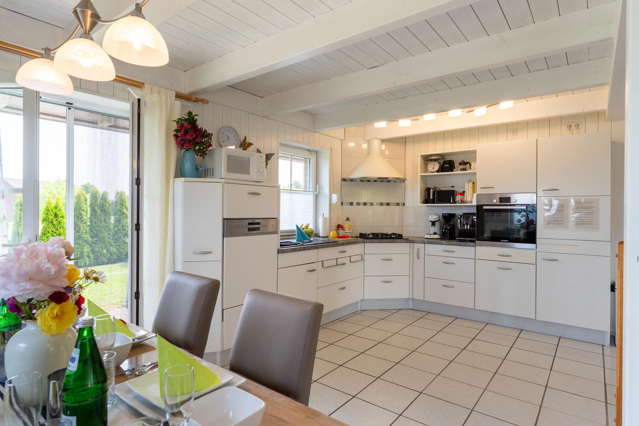 Auf zwei Etagen erwarten Sie insgesamt 4 Zimmer, darunter 3 gemütliche Schlafzimmer inkl. Flachbild-TV (1 Schlafzimmer im EG, 2 Schlafzimmer im 1. OG) und 2 gut ausgestattete Badezimmer jeweils mit modernen Glasduschkabinen. Die offene Küche, die direkt in den einladenden Wohnbereich übergeht, verfügt über alle Annehmlichkeiten wie einen Herd, Backofen, Spülmaschine und einen Kaffeevollautomaten. Hier können Sie mit Ihren Lieben köstliche Mahlzeiten zubereiten und am großen Esstisch gemeinsam genießen.