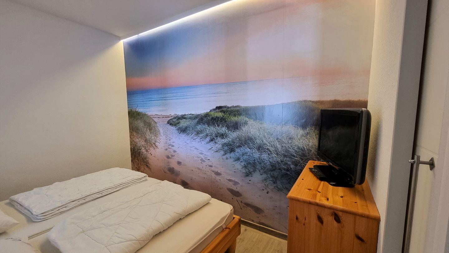 Diese tolle Wohnung ist komplett für 4 Personen eingerichtet und verfügt über ein separates Elternschlafzimmer mit Doppelbett (2 x 90*190) und TV-Gerät (70 cm Durchmesser). Das Schlafzimmer ist separt vom Wohnraum getrennt und mit einem Fenster in den Wohnraum ausgestattet.