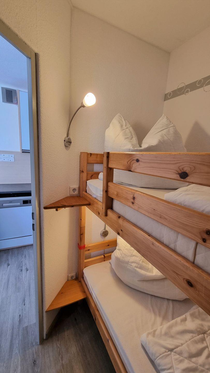 Daneben, in einem kseparaten Raum, können 2 weitere Personen in einem Doppelstockbett (2 x 80*190) nächtigen. Das Zimmer verfügt über ein Fenster und ist über ein Rollo verdunkelbar.