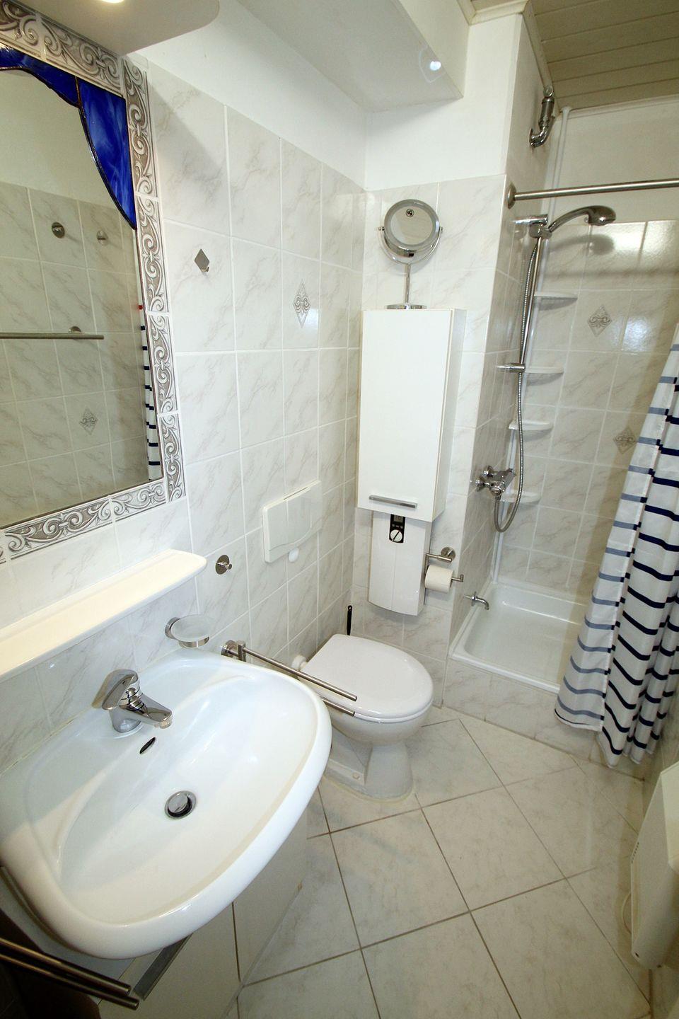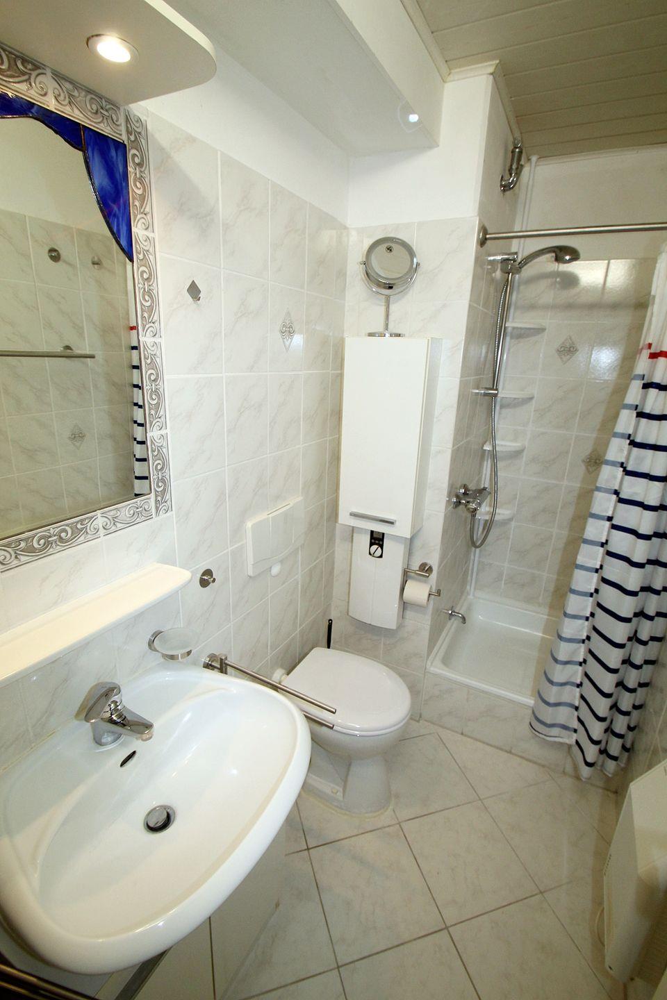 Der Sanitärbereich verfügt über eine Dusche sowie WC.