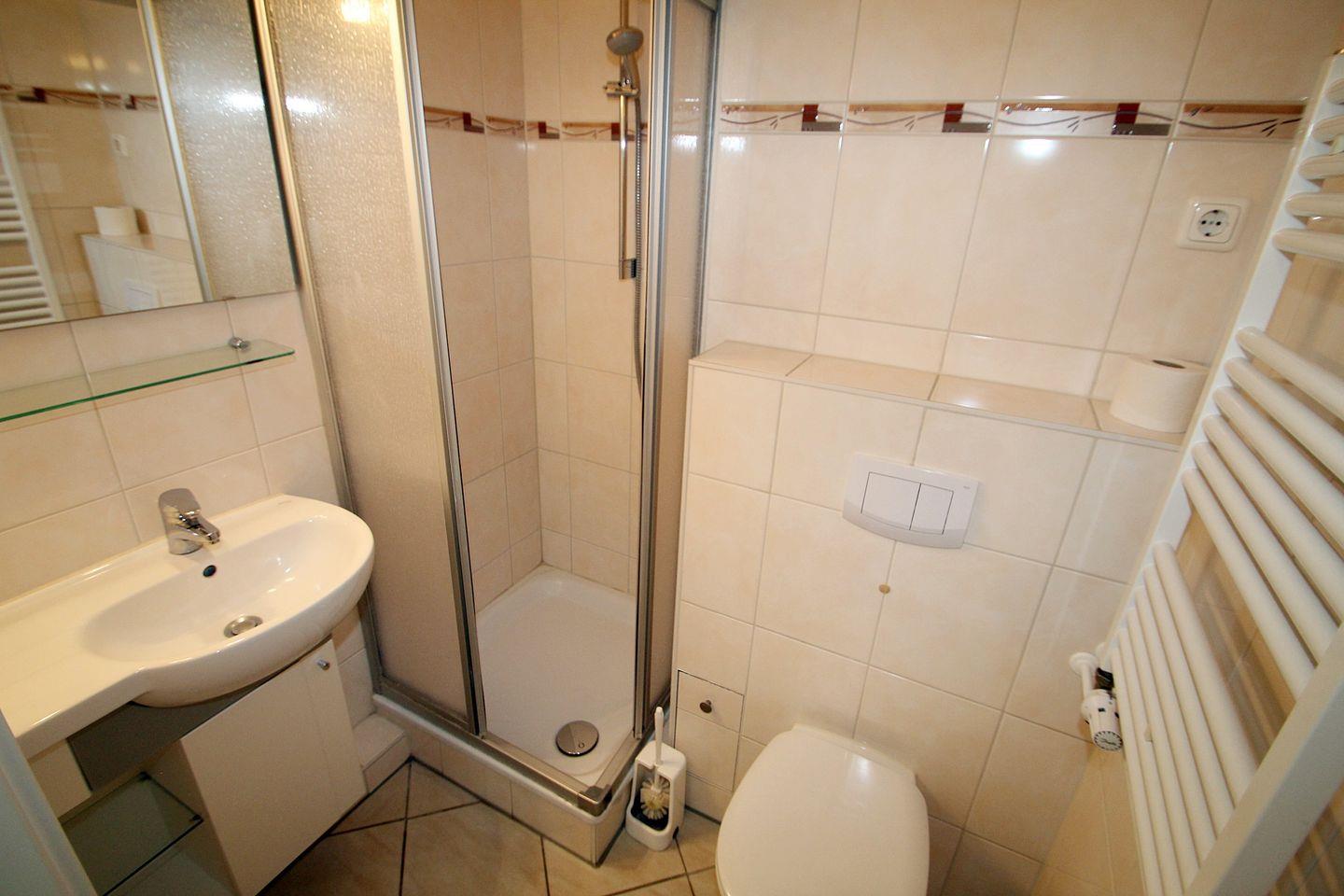 Das Bad ist ein Duschbad mit WC.