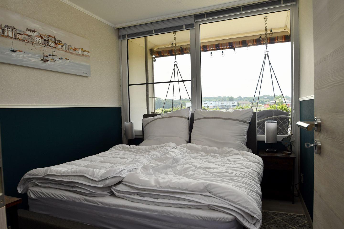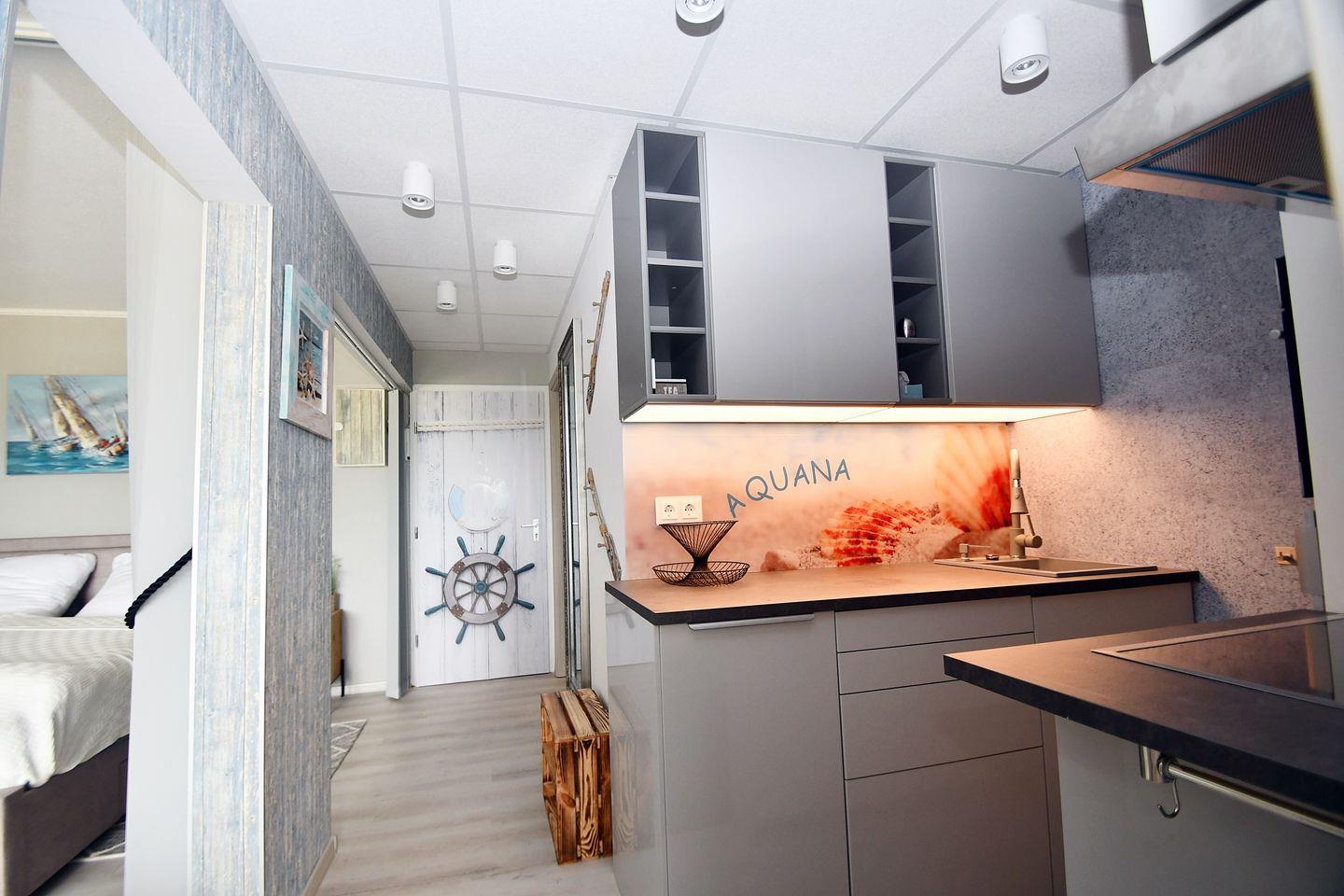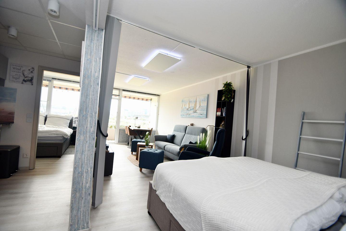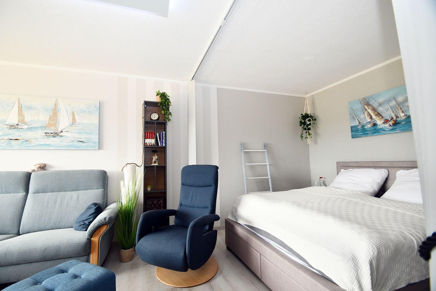 Komplett renovierte, sehr hochwertig ausgestattete, freundliche und helle Ferienwohnung "AQUANA" im Erdgeschoß mit Balkon zur Südseite und Blickrichtung über den Binnensee.