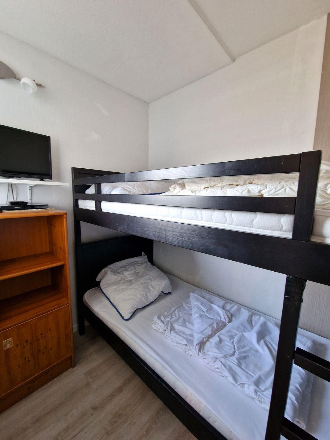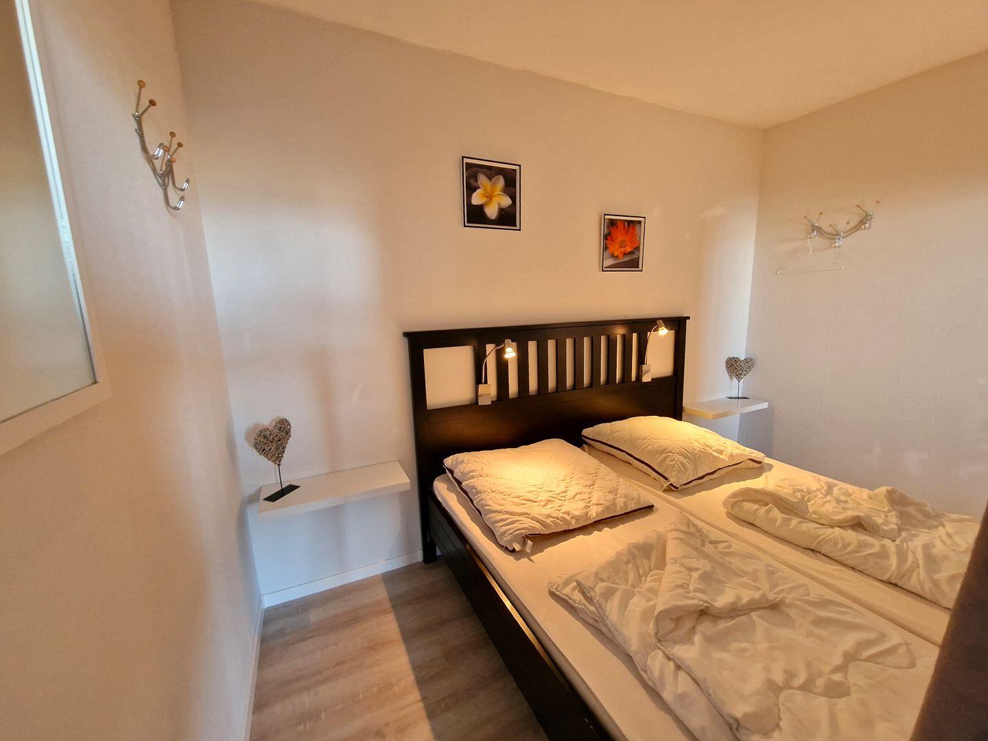 Für bis zu 4 Personen ausgestattet, bietet die Wohnung ein separates Schlafzimmer mit Doppelbett, ein eigenes kleines Kinderzimmer mit Etagenbett und TV. Auch im Wohnbereich wurde auf eine ordentliche Ausstattung geachtet und mit Laminat-Fußboden, Ledercouch und Schwing-Stühlen versehen. Ein großer LCD-TV und WLAN gehören ebenfalls zur Ausstattung.