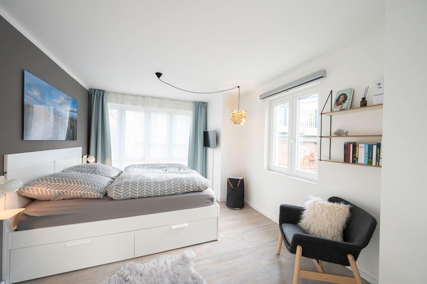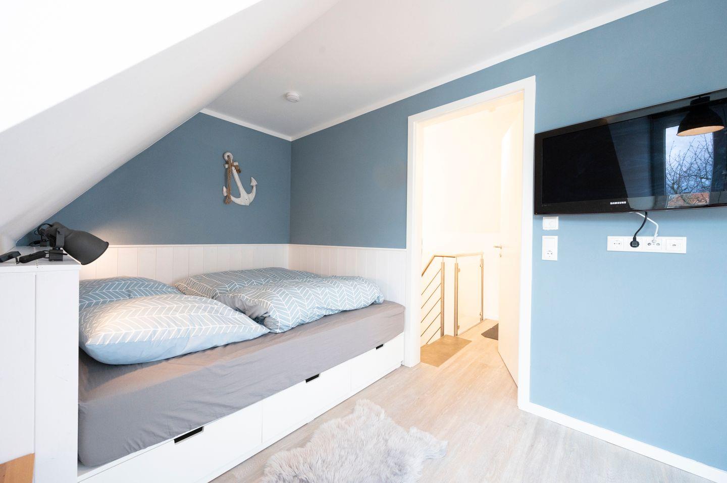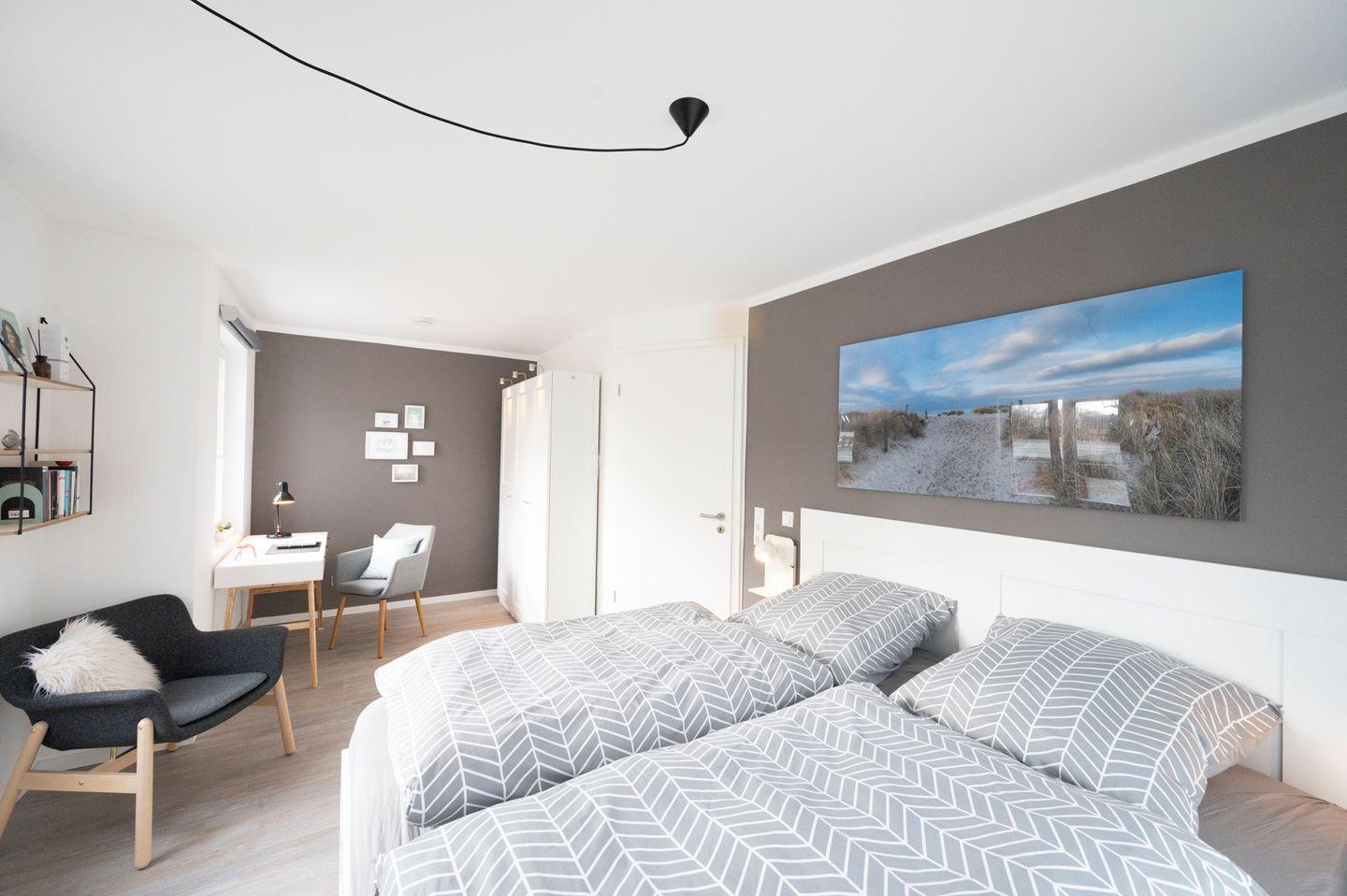 Das Haus im skandinavischen Stil ist sehr hochwertig und modern eingerichtet. Die zwei Schlafzimmer befinden sich in den oberen beiden Etagen - eines hat ein Doppelbett, das andere ein Doppelbett sowie ein Einzelbett. Jedes Schlafzimmer hat sein eigenes Badezimmer. Ein Babybett sowie ein Hochstuhl stehen Ihnen kostenfrei zur Verfügung.