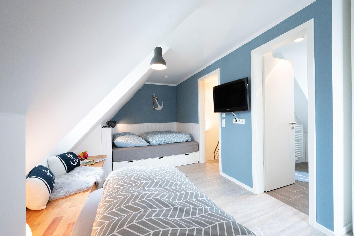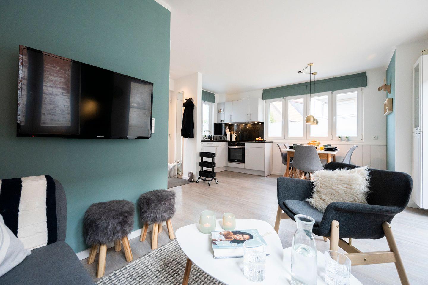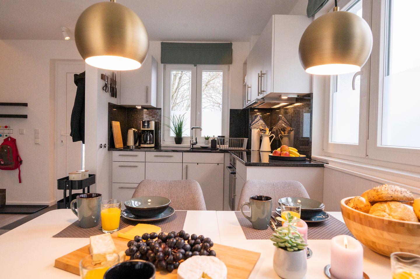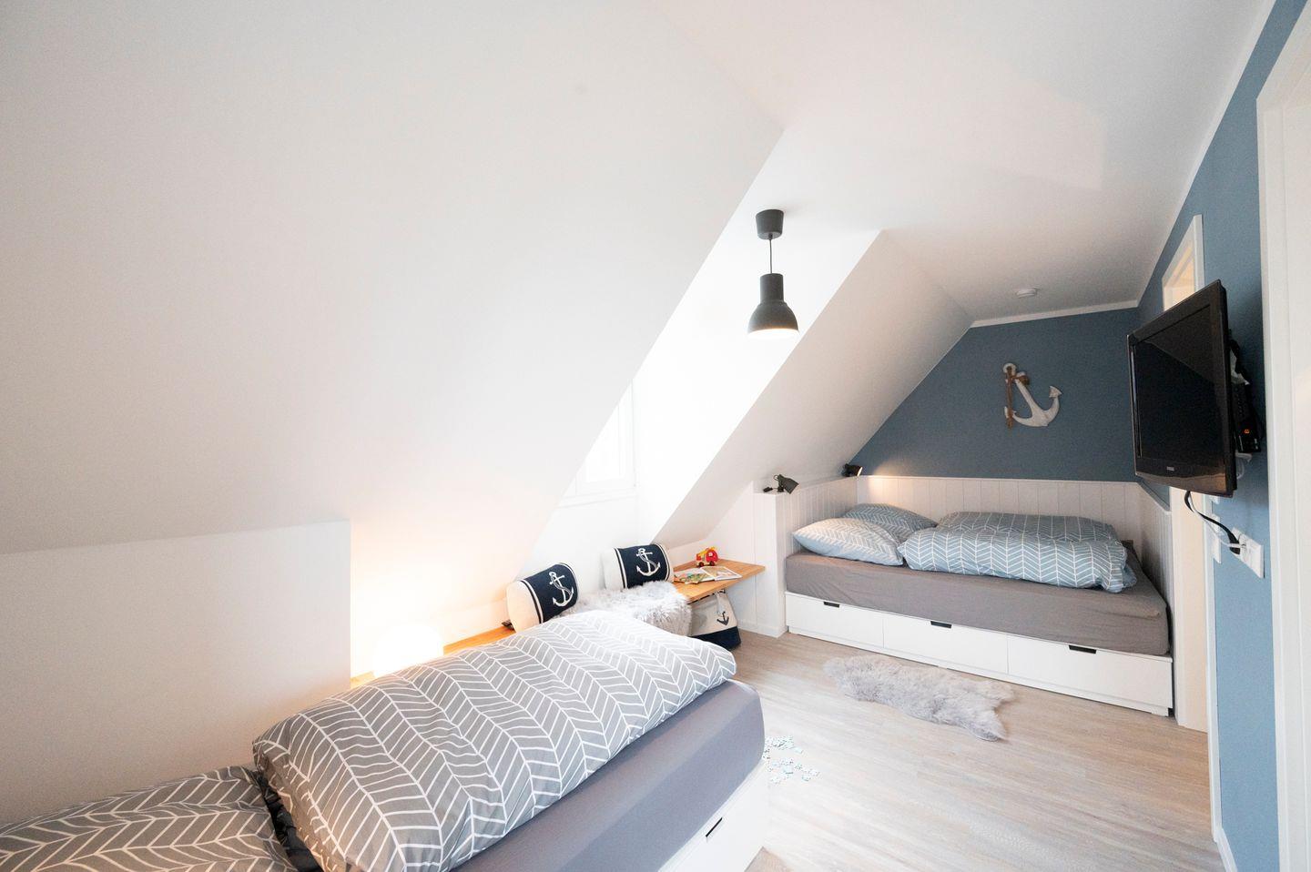 Das Haus im skandinavischen Stil ist sehr hochwertig und modern eingerichtet. Die zwei Schlafzimmer befinden sich in den oberen beiden Etagen - eines hat ein Doppelbett, das andere ein Doppelbett sowie ein Einzelbett. Jedes Schlafzimmer hat sein eigenes Badezimmer. Ein Babybett sowie ein Hochstuhl stehen Ihnen kostenfrei zur Verfügung.