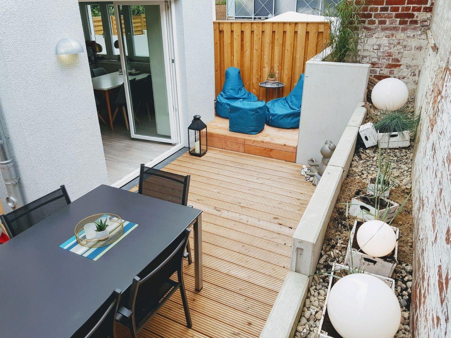 Die Sonnenterrasse ist komplett eingewachsen und bietet eine ruhige Hinterhofatmosphäre - perfekt, um einen Tag entspannt ausklingen zu lassen. Gartenmöbel und eine Chill-out-Ecke erwarten Sie.